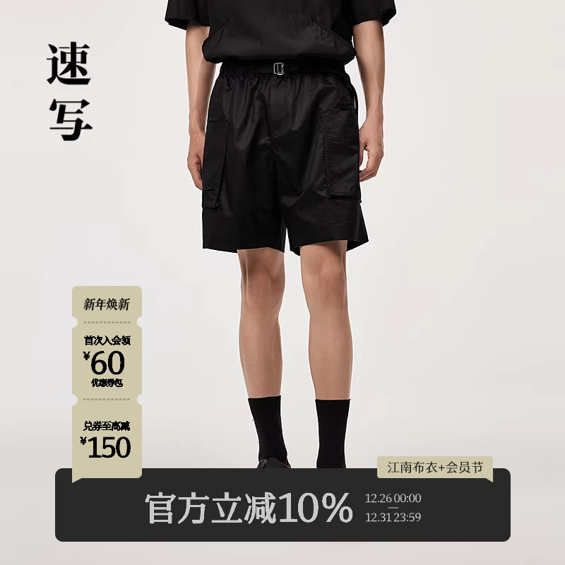 速写男装夏季新款工装短裤大口袋抽绳时髦设计前卫潮流阔腿五分裤