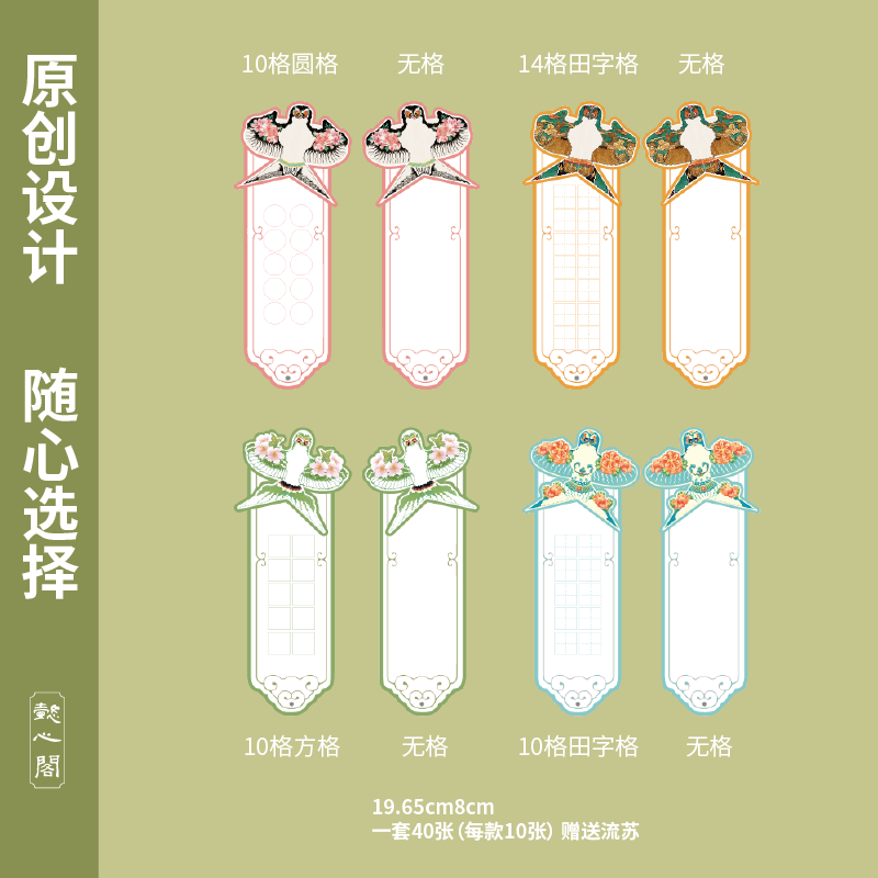 懿心阁纸鸢书签创意硬笔书法作品纸小学生田字格风筝古诗书法纸