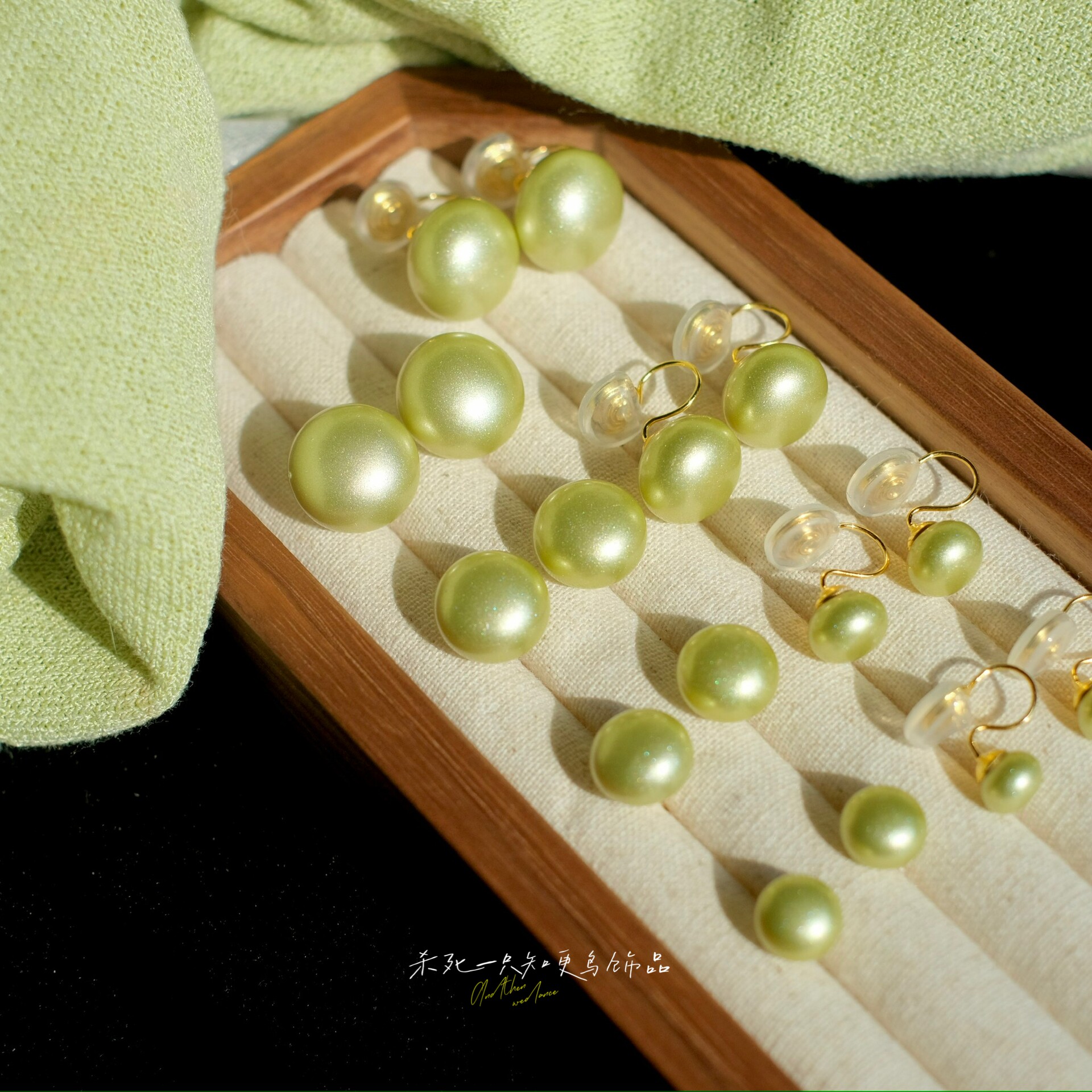 《粉妆绿黛》春夏复古简约气质粉绿色幻彩馒头珍珠耳钉耳环耳夹女