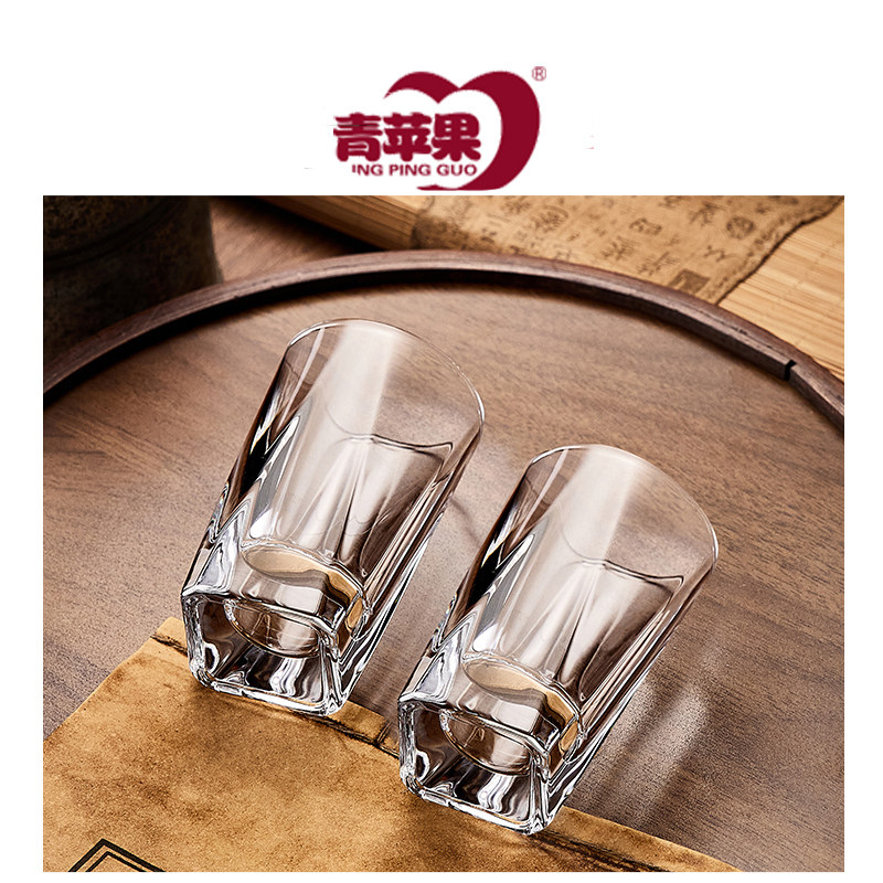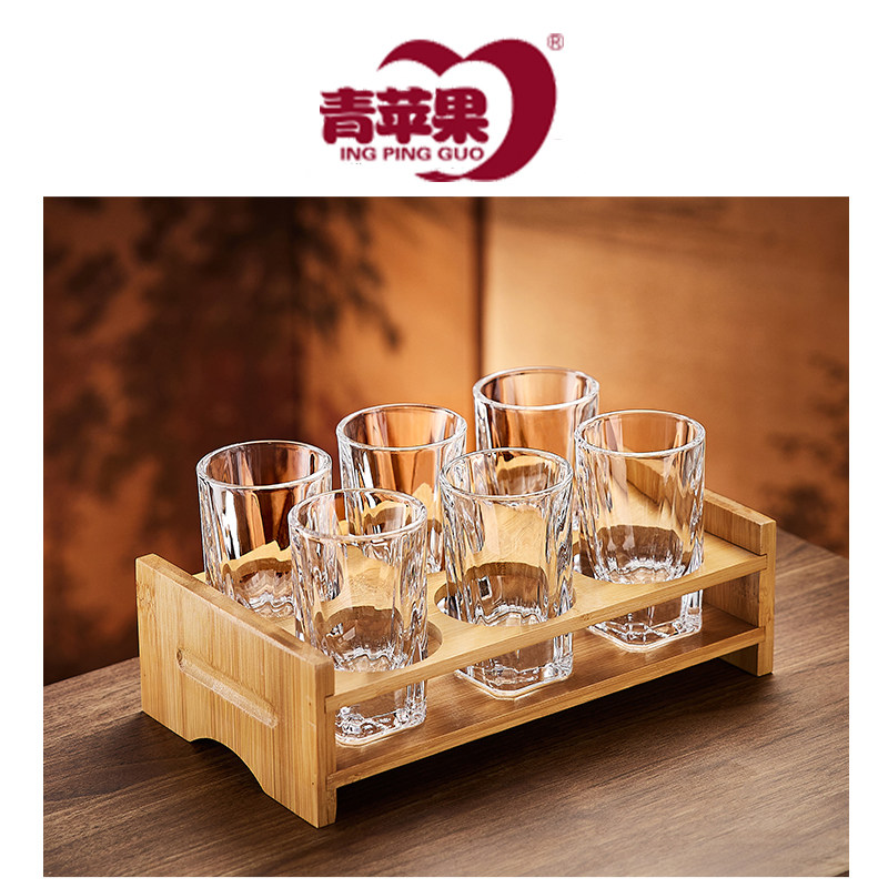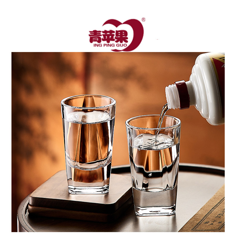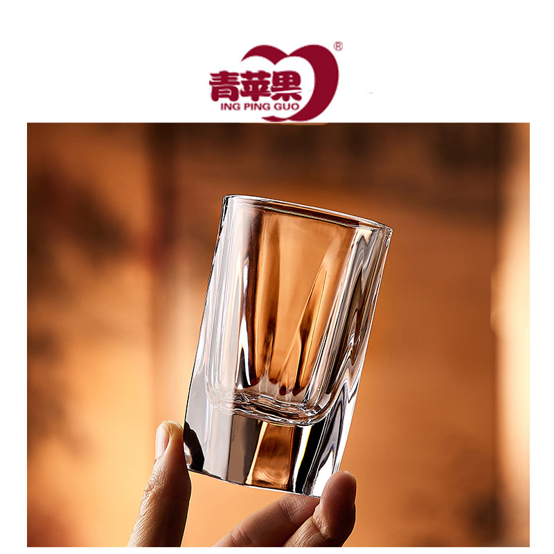 青苹果玻璃白酒杯二两杯家用小酒杯带刻度高档饭店洋酒一口烈酒杯