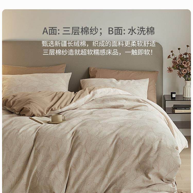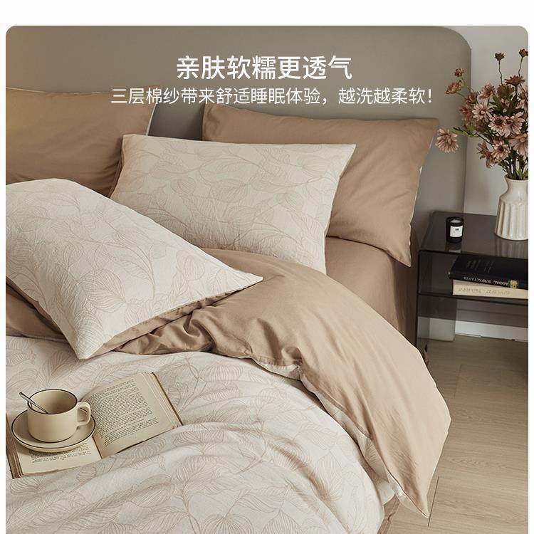 母婴A类全棉水洗棉三层纱四件套纯棉被套床单床笠三件套床上用品4