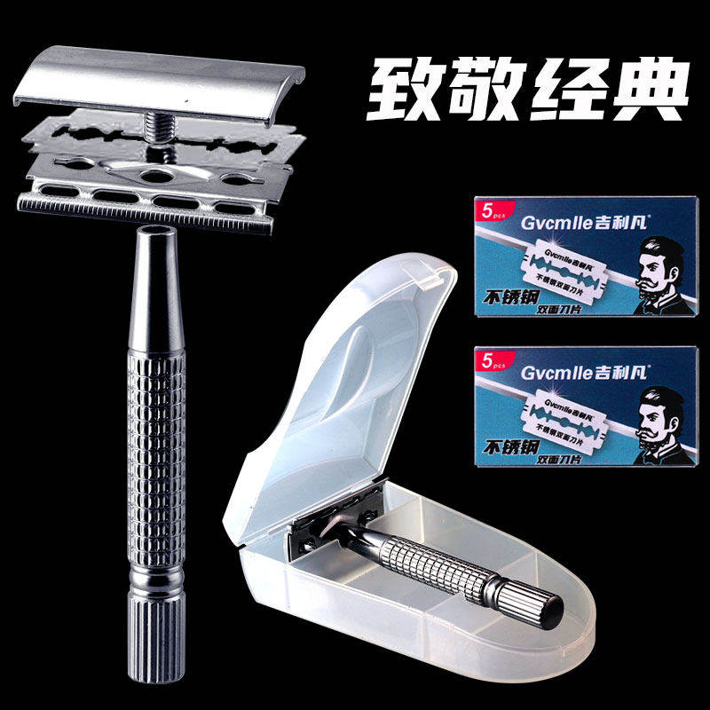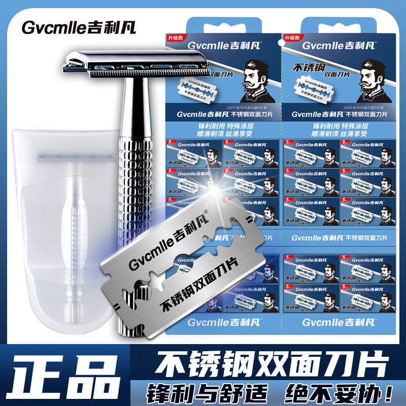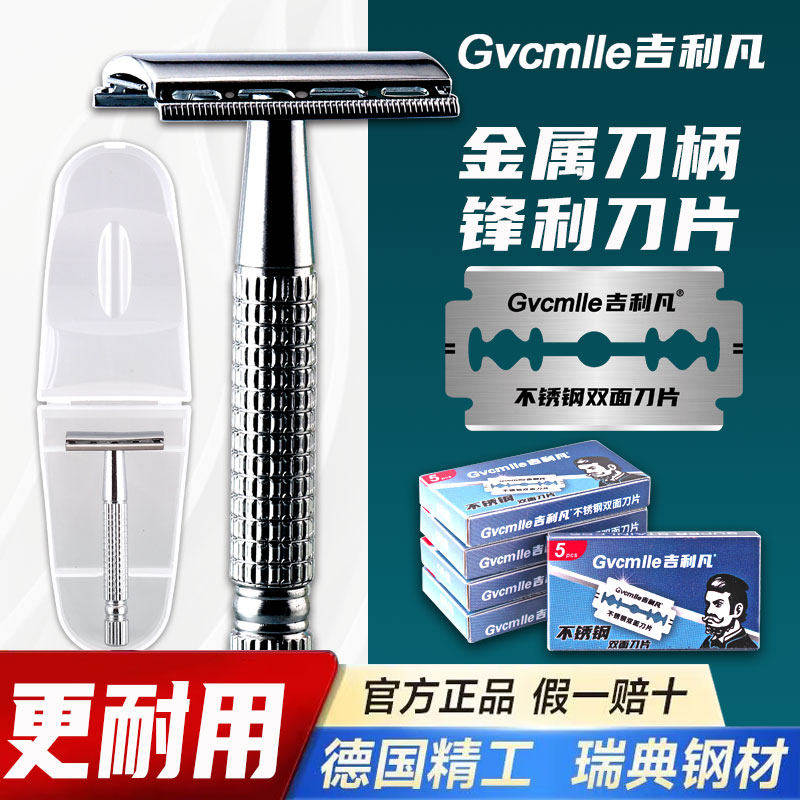 吉利凡手动剃须刀男士老式刮胡刀安全刮胡子刀片刀架通用刮脸刀片