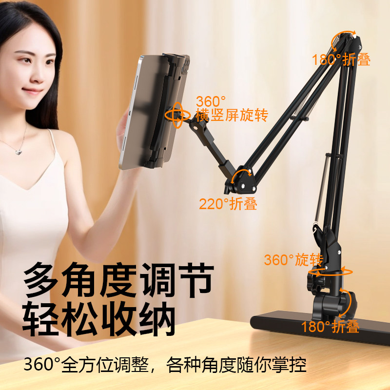 隐藏免夹式床头懒人手机支架多功能ipad平板通用悬臂支架家用床上躺着看电视追剧万向支撑架子