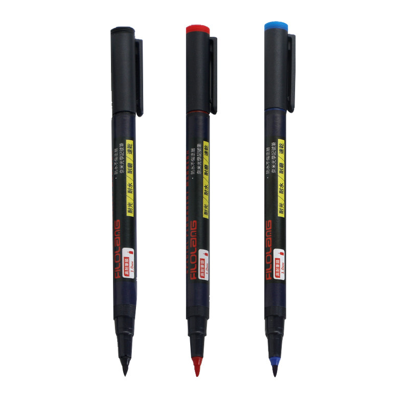 晨光记号笔防水防油不掉色黑色单头油性勾线笔美术专用粗细两头速干马克笔小学生幼儿园儿童绘画红色标记笔