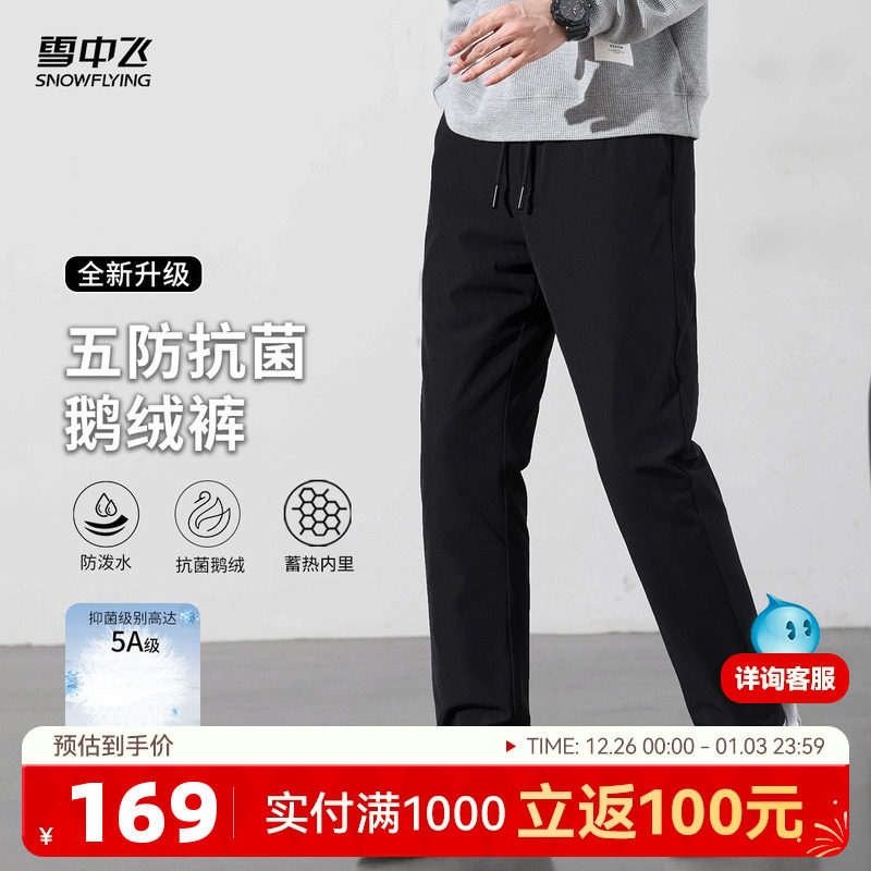 雪中飞2025冬新款男士鹅绒裤直筒蓄热防泼水抗静电5A抗菌绒商务