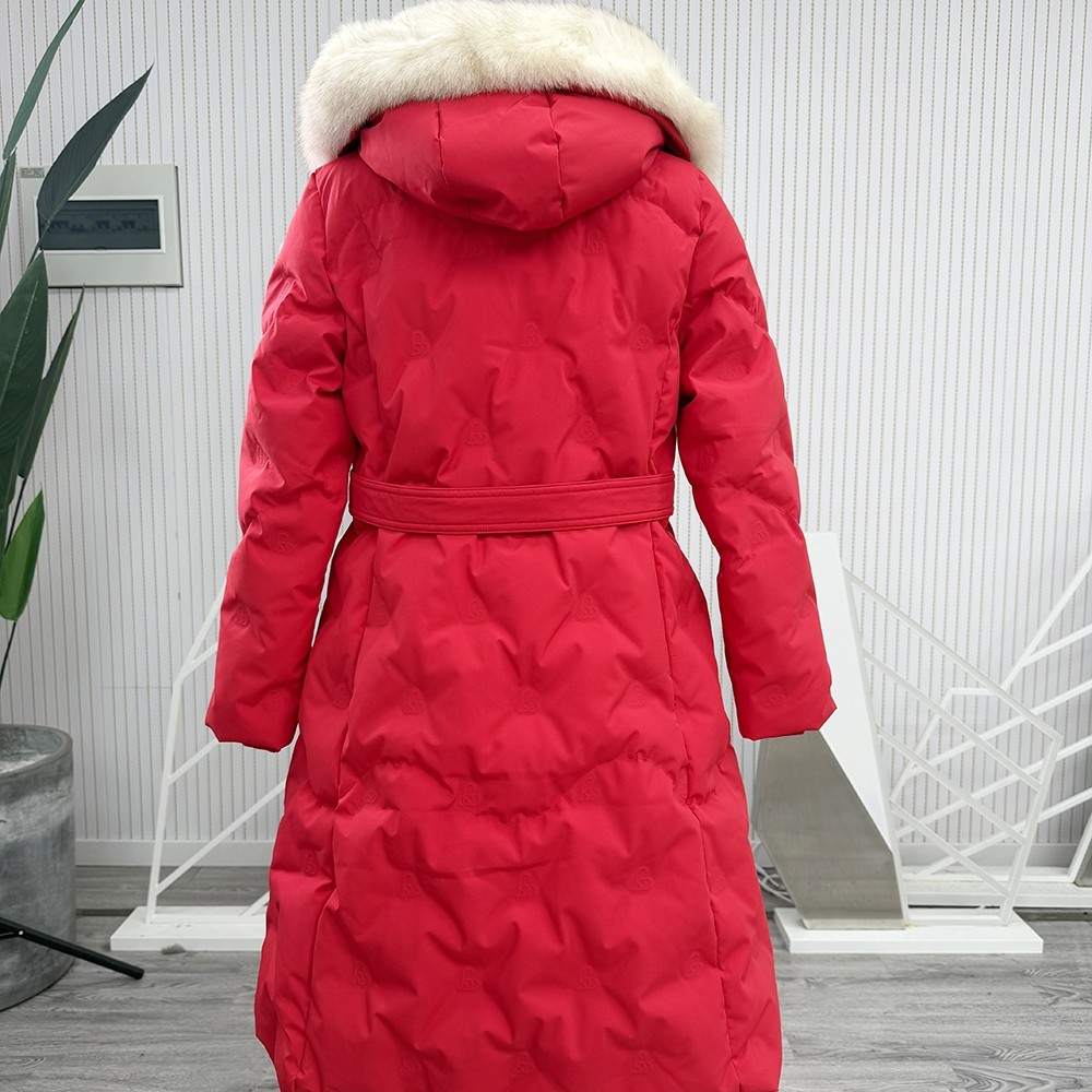 波司登红色狐狸毛领奢华收腰气质长款喜庆过年羽绒服
