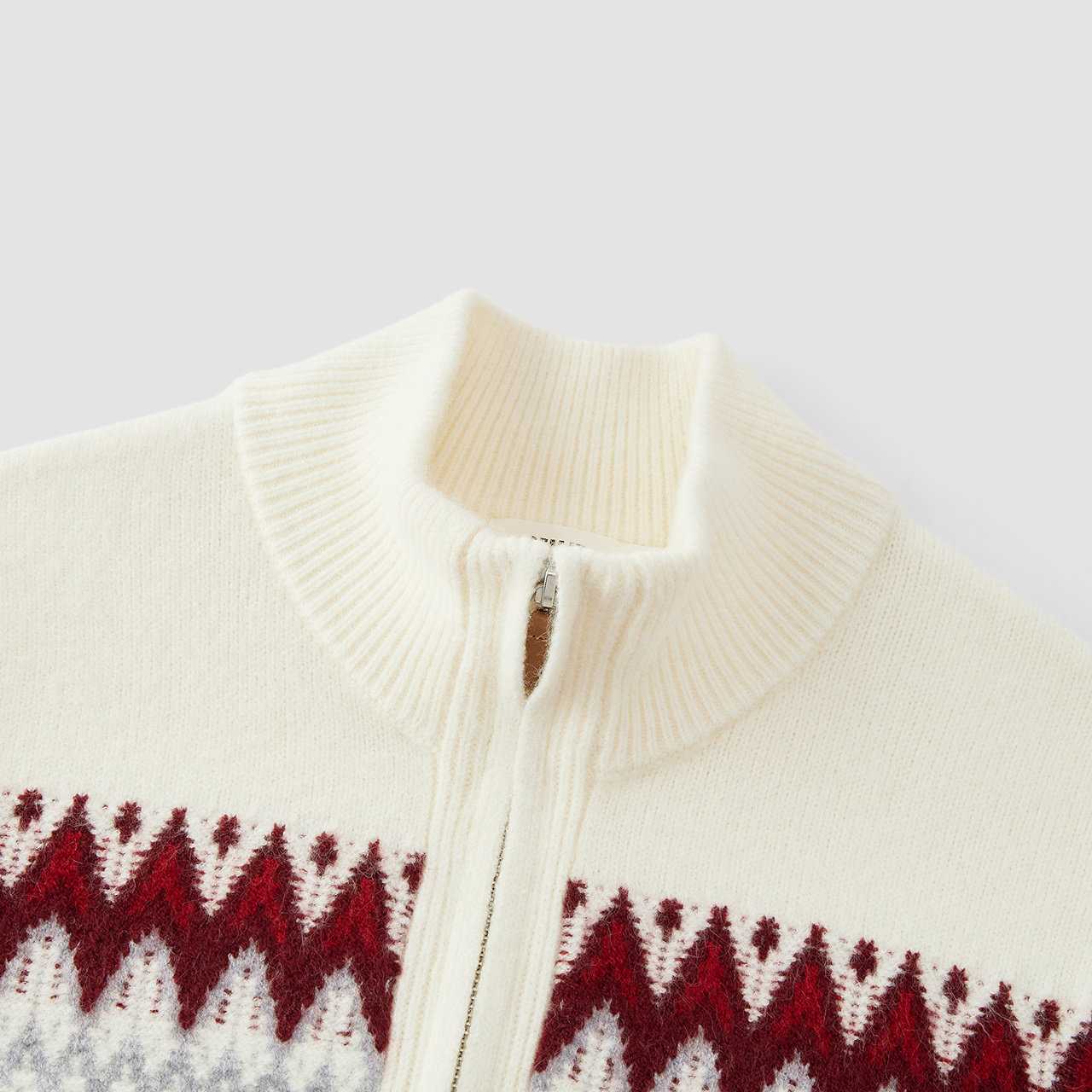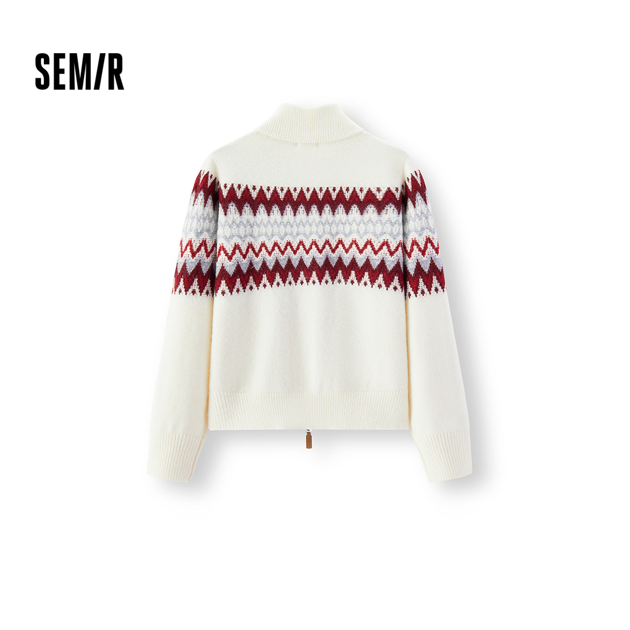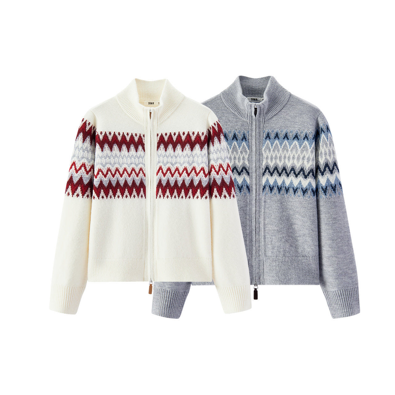 商场同款|森柔森马针织开衫女冬立领费尔岛2025新款复古潮流毛衫