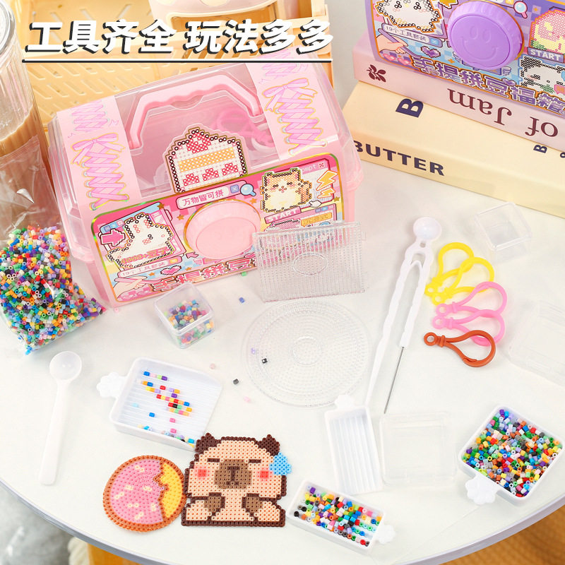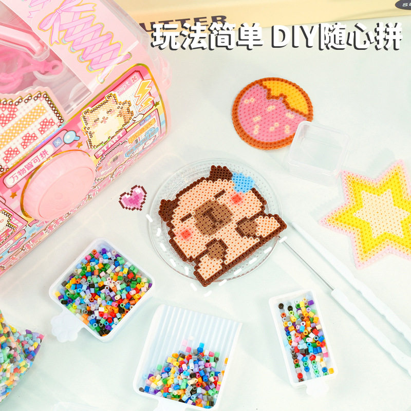 趣味栗子君手提拼豆福箱儿童便携收纳箱可叠加密封防潮桌面整洁