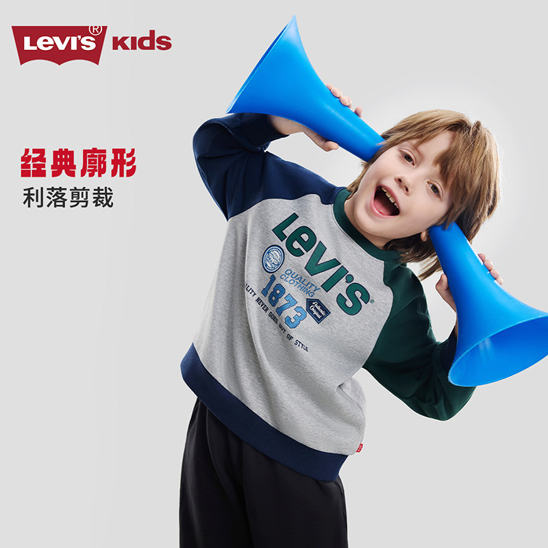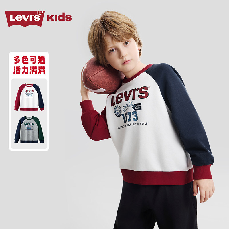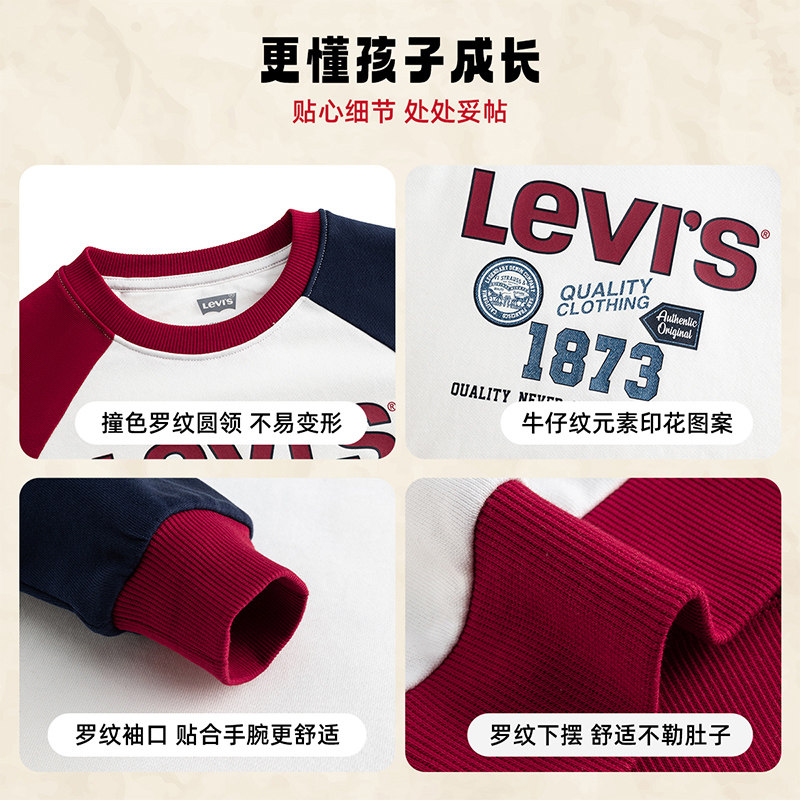 Levis李维斯儿童卫衣红色长袖2026春新年男童女童撞色插肩袖上衣