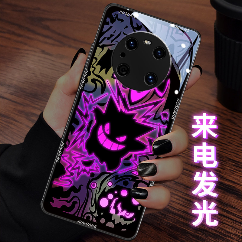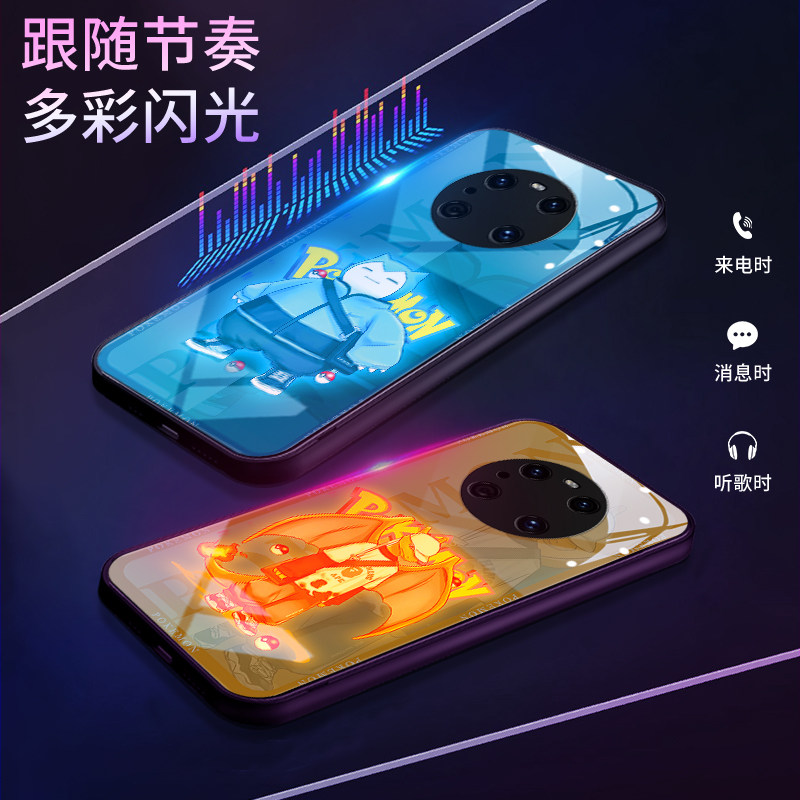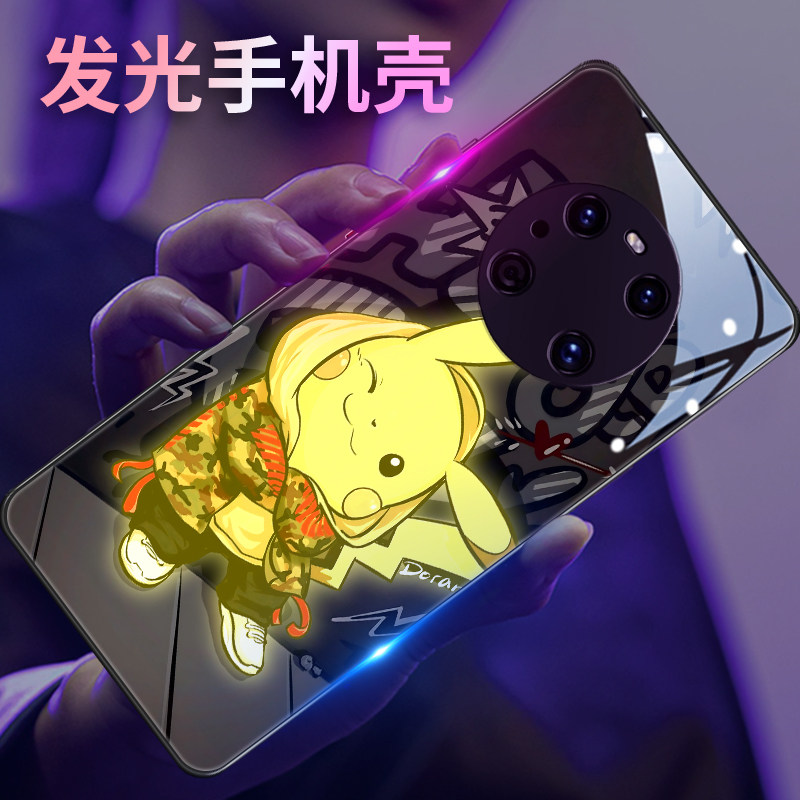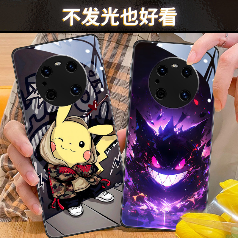 宝可梦适用于华为mate80pro手机壳动漫nova14发光p40玻璃70皮卡丘荣耀x50pura300卡比兽magic7卡通小众90创意
