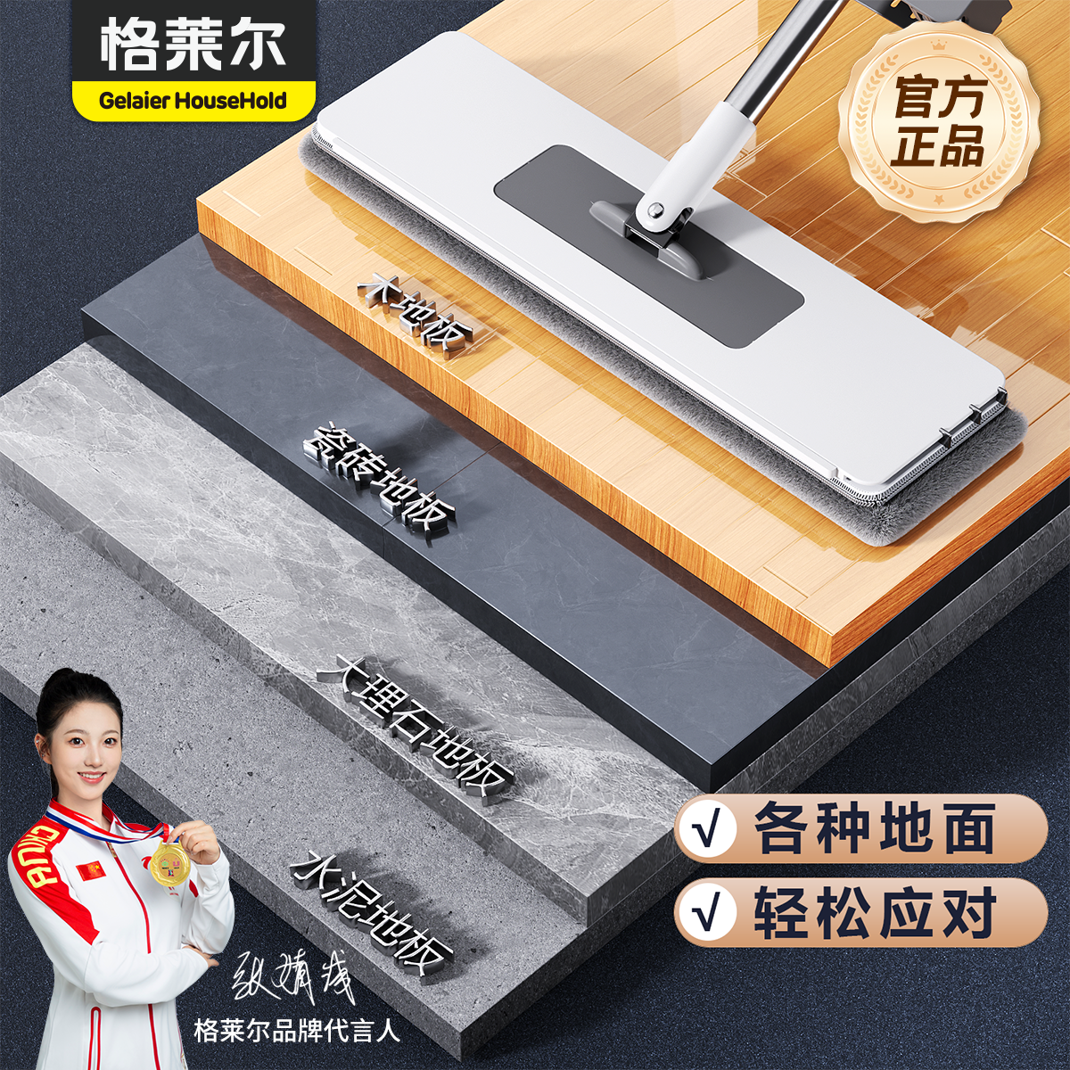 格莱尔免手洗拖把2025家用一拖网红平板拖把两用懒人免洗拖地神器