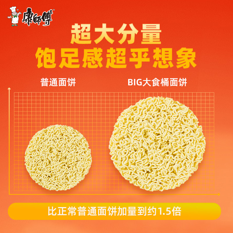 康师傅方便面大食桶红烧牛肉藤椒香辣多口味混合大桶泡面速食夜宵