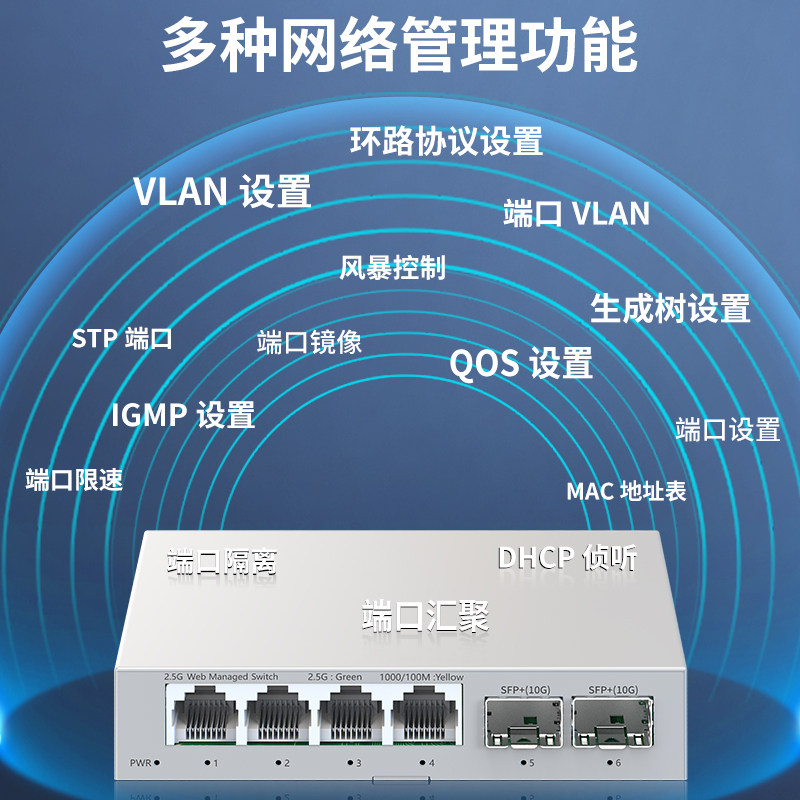 联果 2光4电 2.5G以太网交换机 WEB管理型轻网管 万兆上联NAS分线器家用路由分流钢壳监控专用以太网交换器