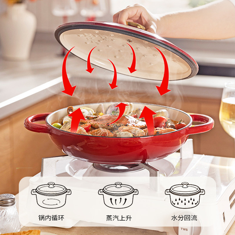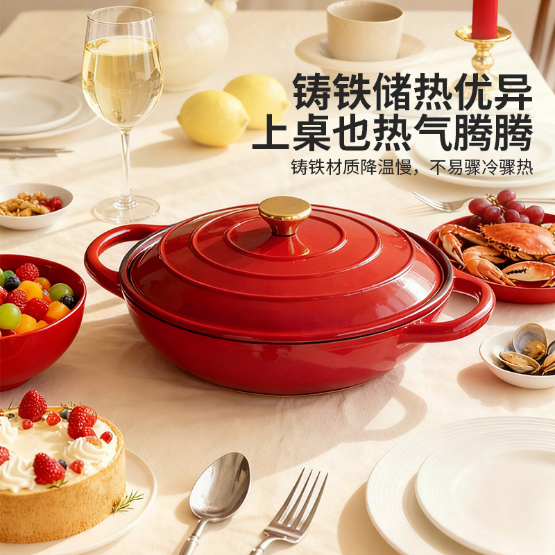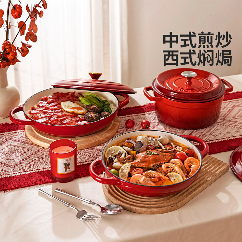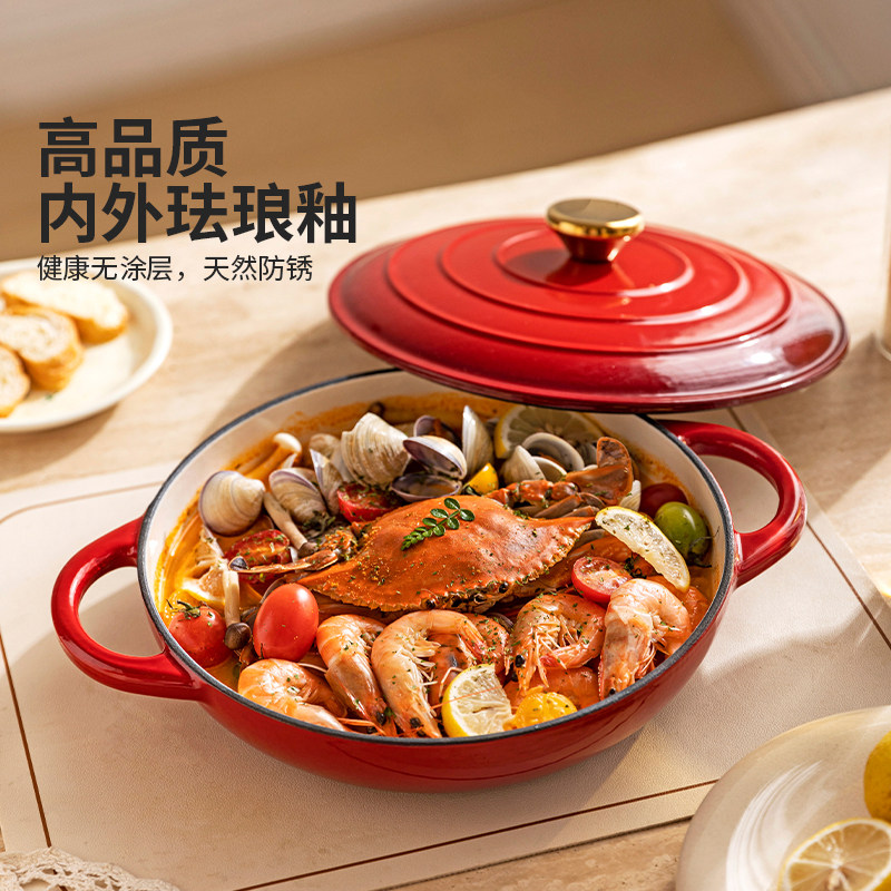 摩登主妇珐琅海鲜锅家用不粘肉蟹煲焖炖锅砂锅燃气专用平底铸铁锅