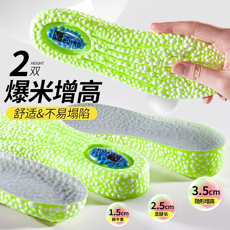 踩屎感增高鞋垫男真爆米花运动全掌气垫减震内增高鞋垫不累脚吸汗