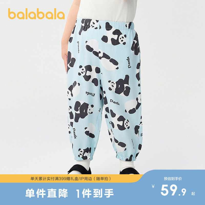 巴拉巴拉儿童裤子男童女童夏季防蚊裤小童宝宝睡裤天丝人棉可外出