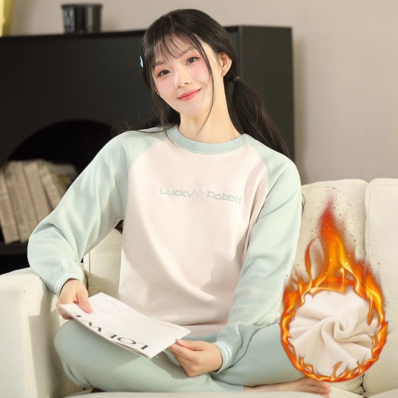 莹柔7057秋冬中厚棉秋衣秋裤圆领修身保暖内衣棉毛衫基础打底套装