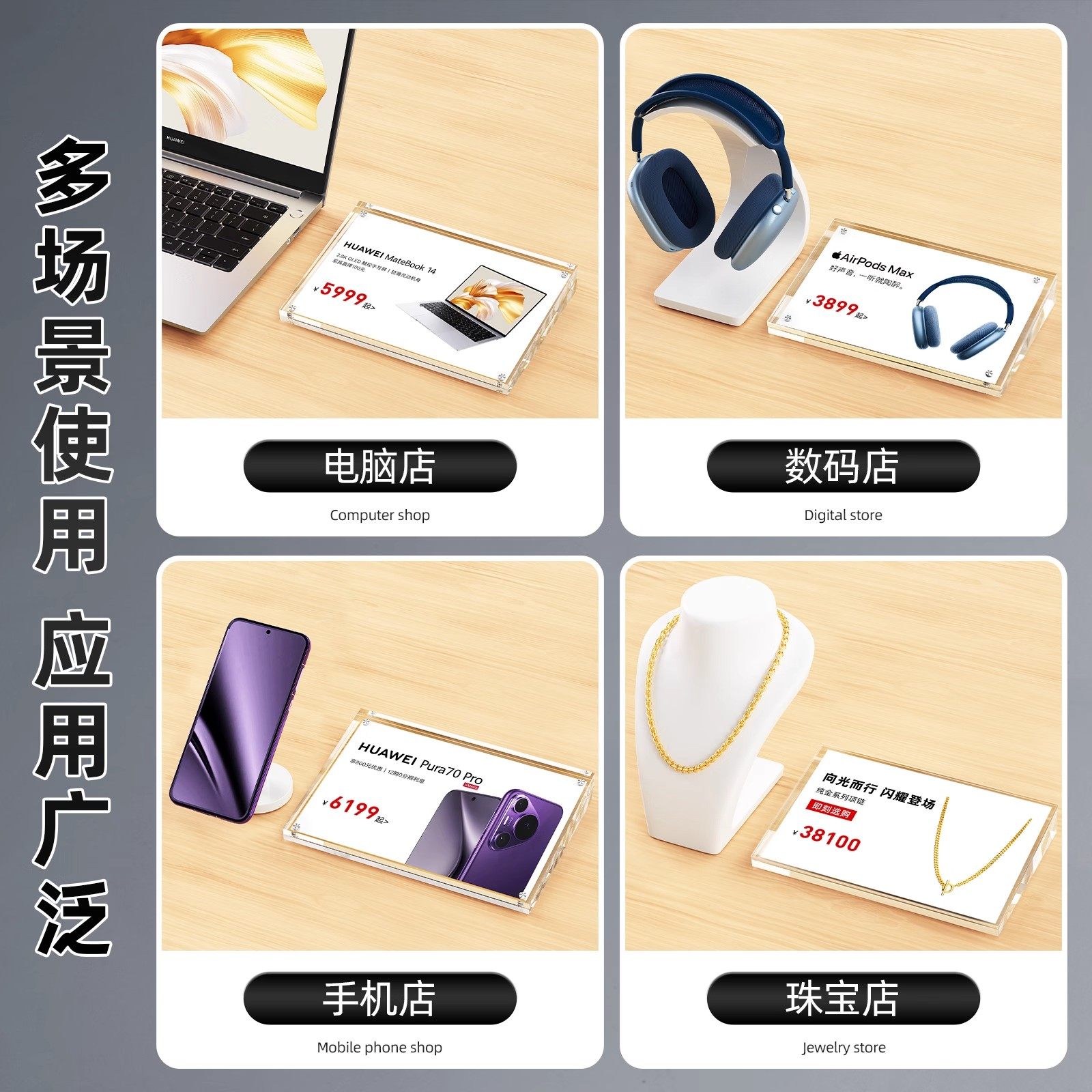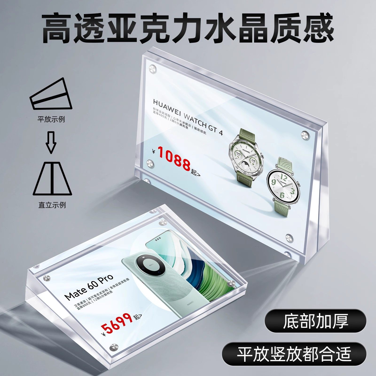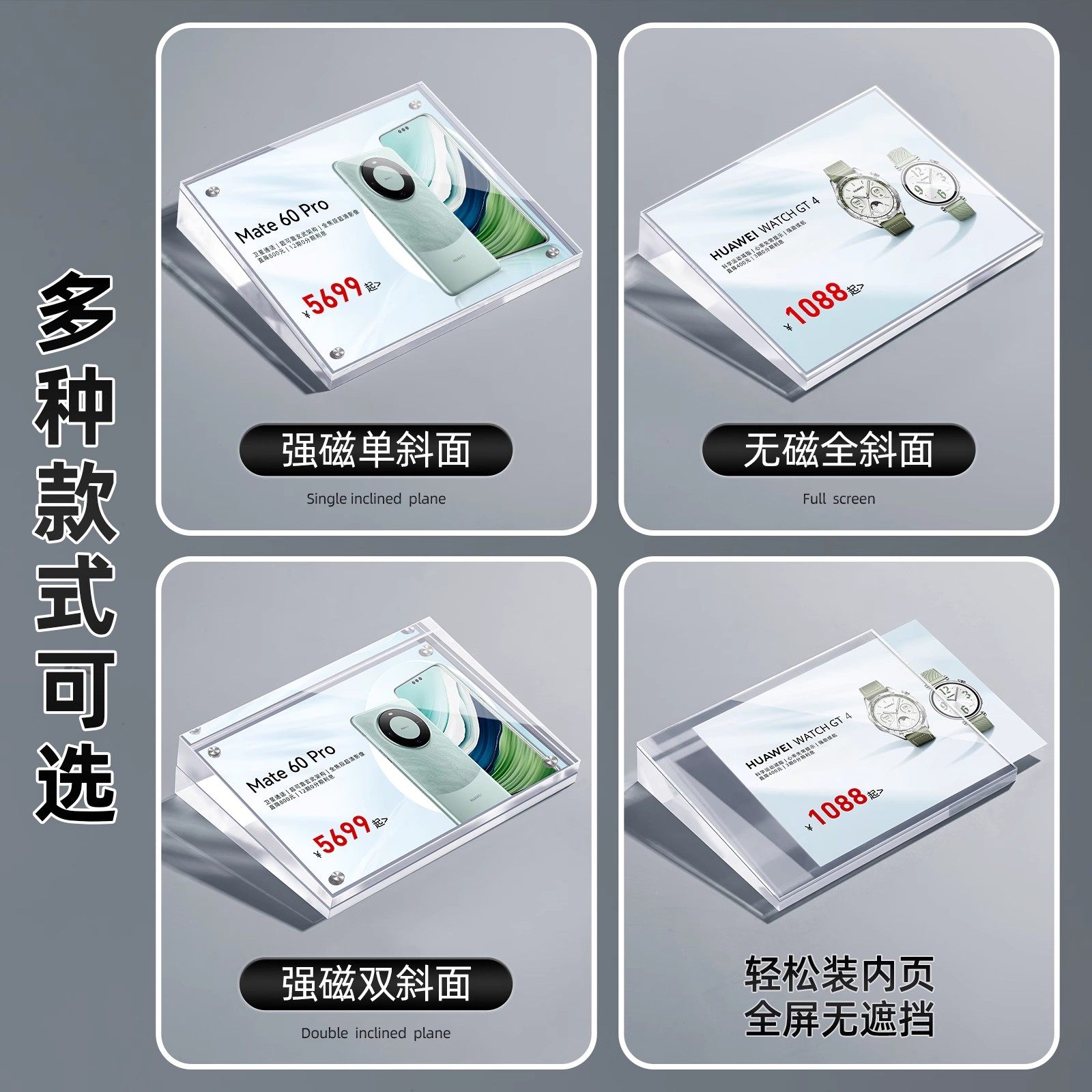 亚克力斜面价格展示牌台卡全面屏立牌无边框桌牌桌面价目台签磁吸价签透明小尺寸强磁产品柜台标签水晶卡砖a5