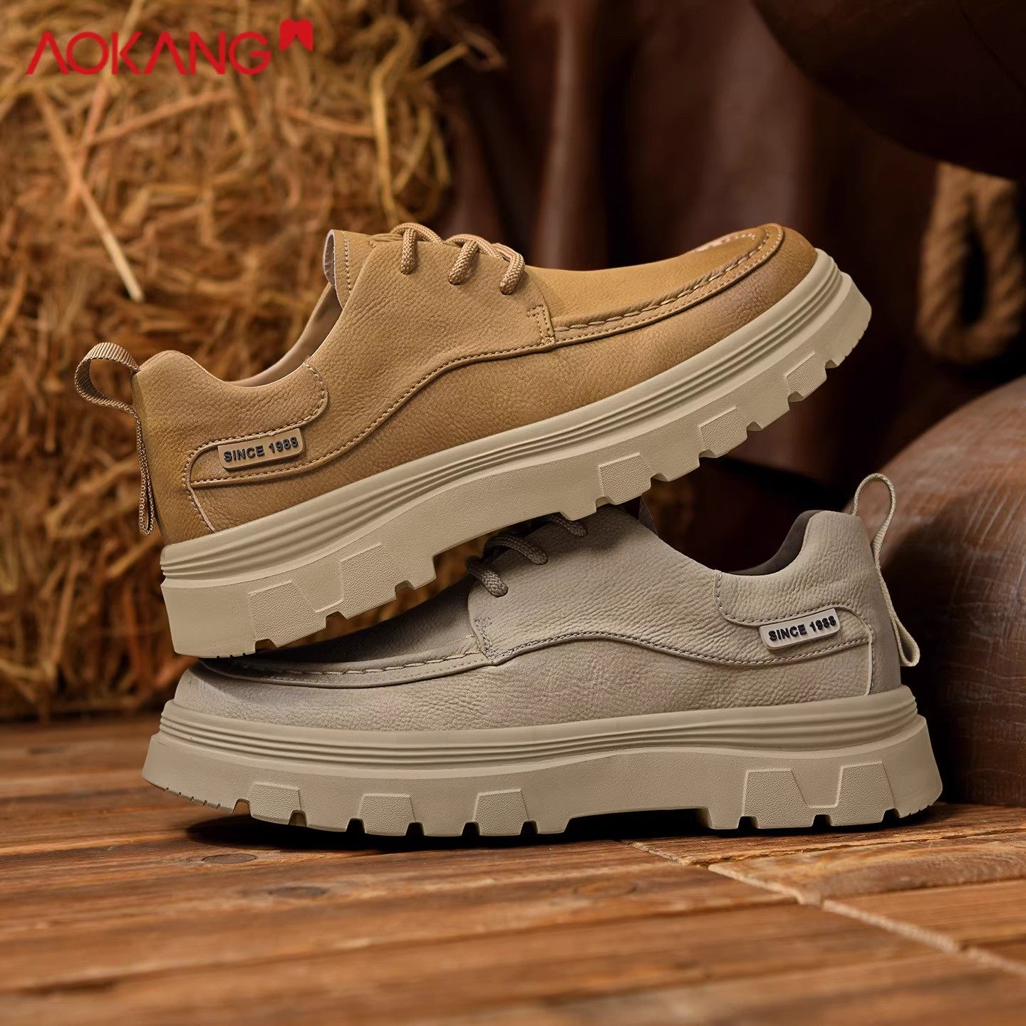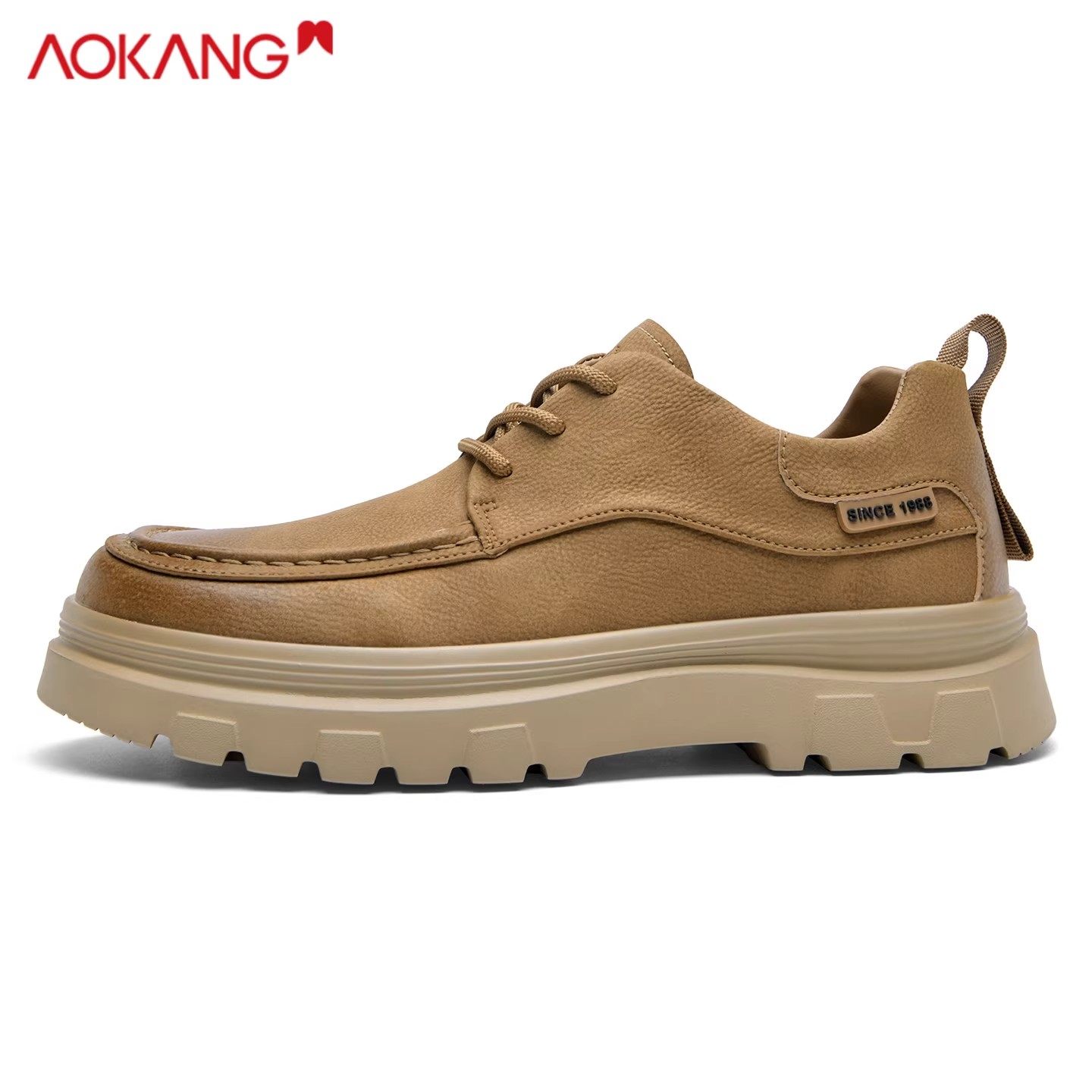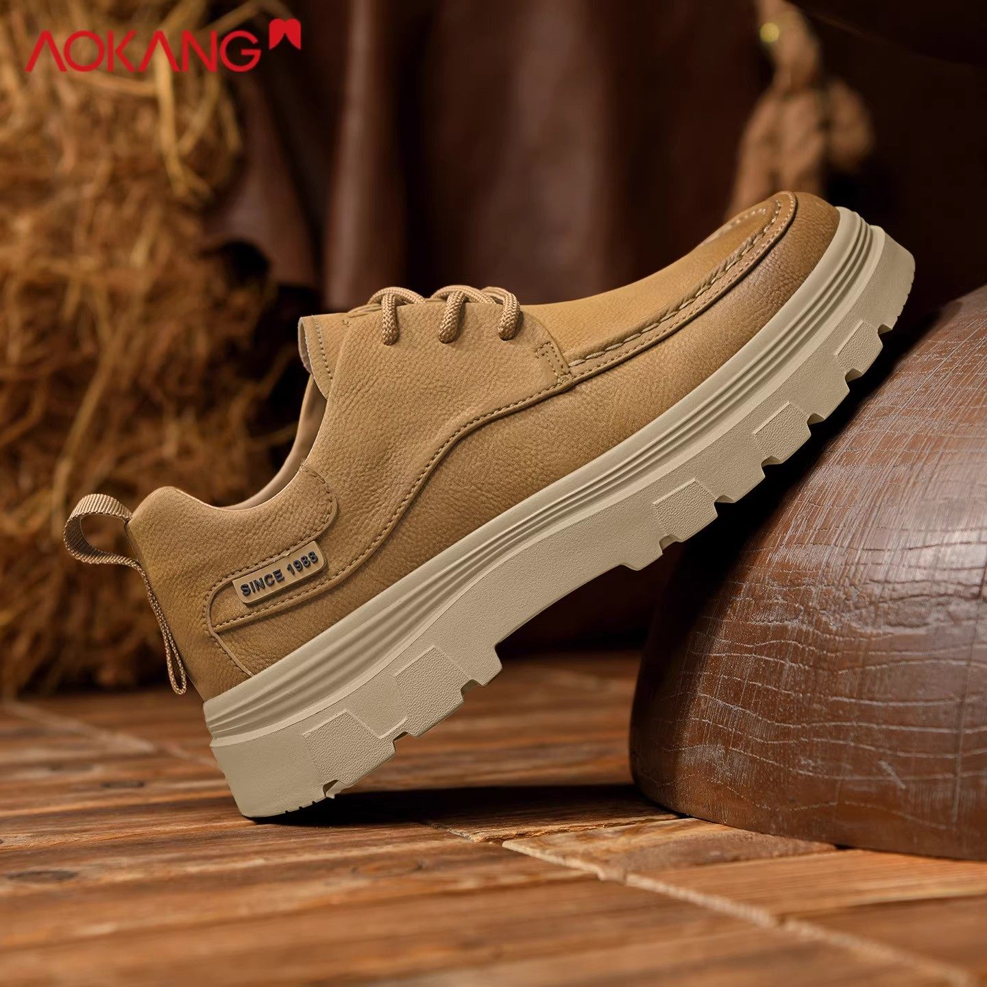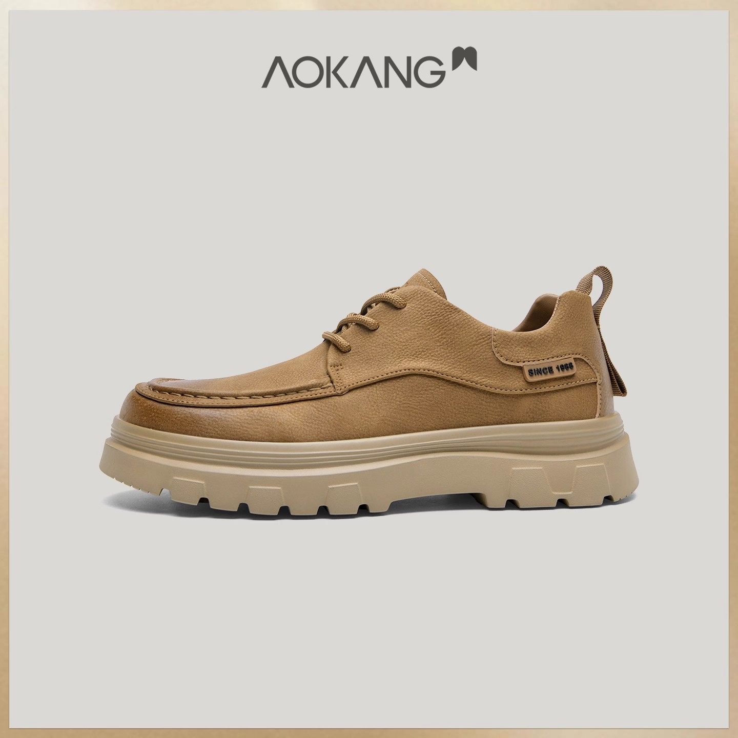 奥康工装鞋男2025新款冬季英伦风厚底休闲鞋男士大头皮鞋圆头系带
