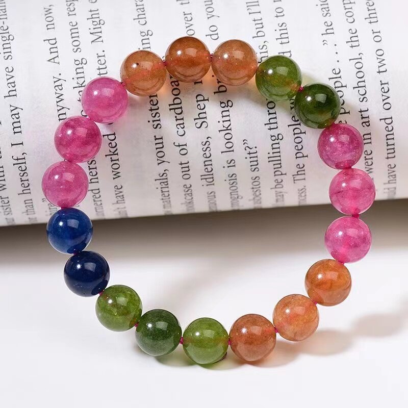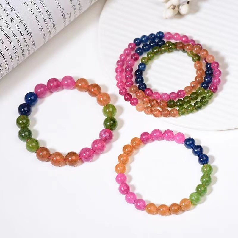 彩虹碧玺玉髓多圈手链正品老矿糖果色碧玺珠子手串石英水晶玉髓链