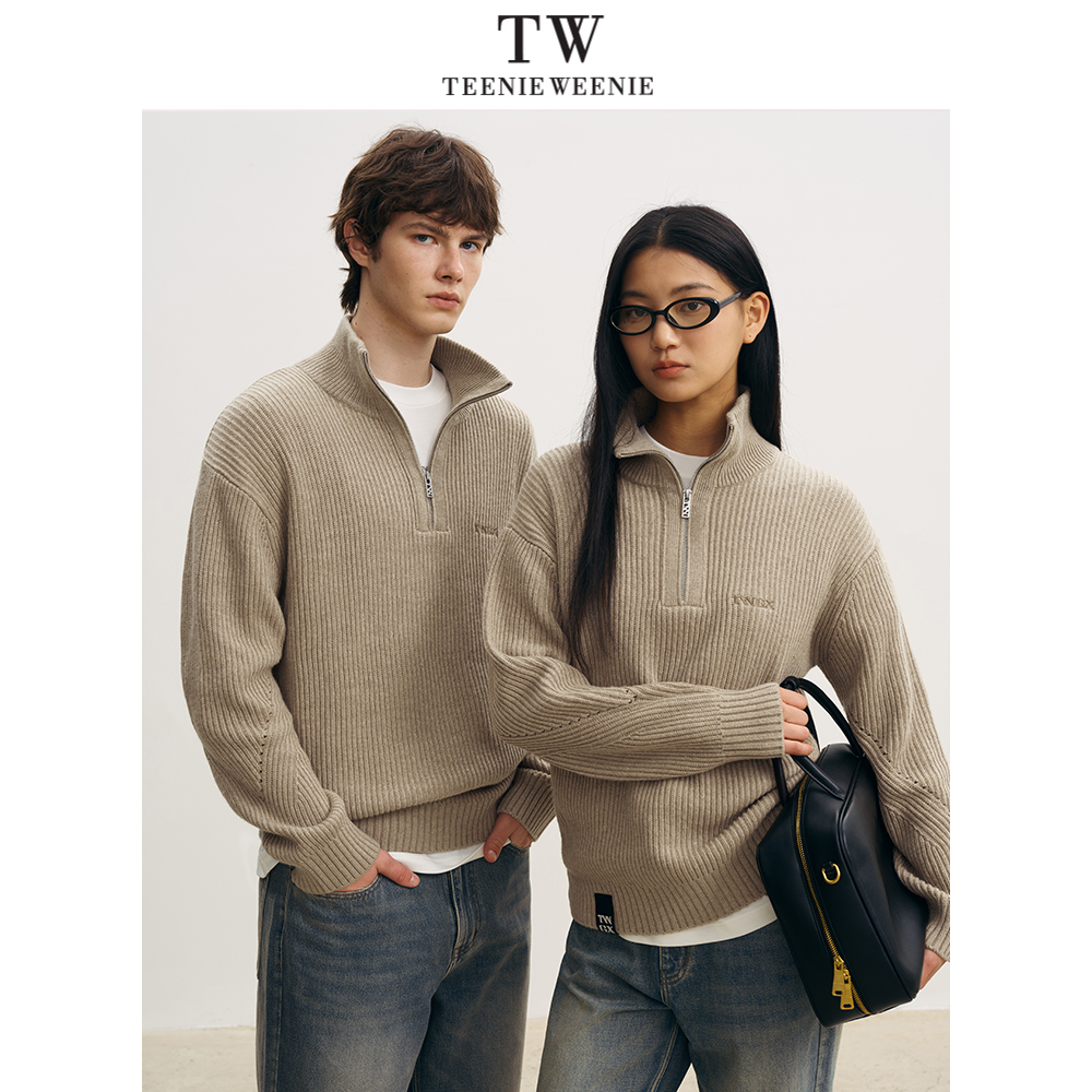 Teenie Weenie小熊男装复古慵懒风半高领拉链纯色软糯舒适毛衣