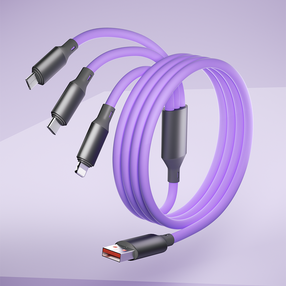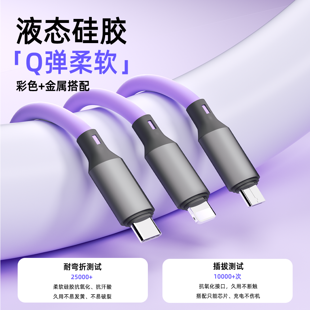 怪兽超人 三合一typec硅胶数据线一拖三100W彩色充电线适用苹果华为OPPO小米vivo安卓手机车载6A超级快充加粗