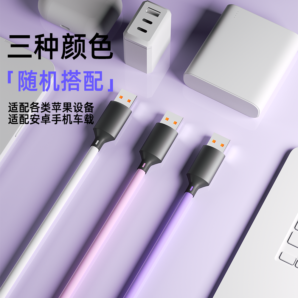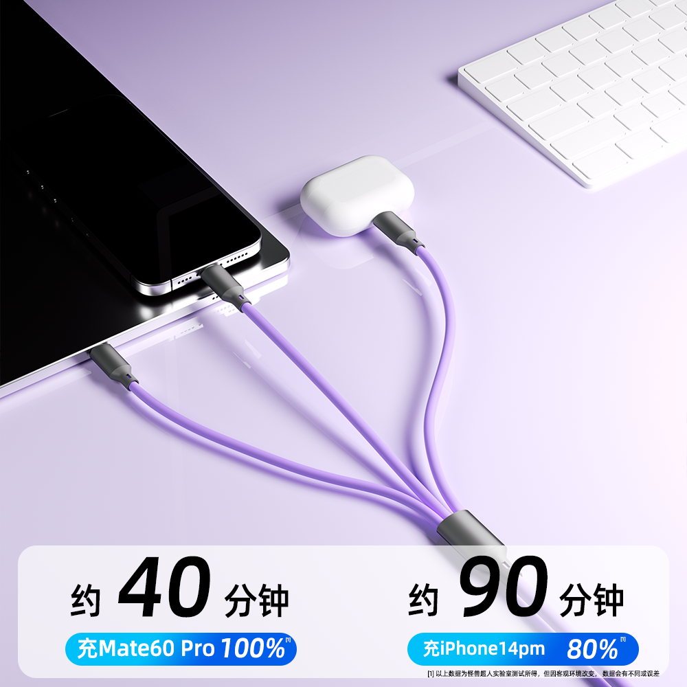 超级快充三合一数据线通用充电线适用苹果荣耀华为OPPO小米VIVO手机通用车载一拖三数据线透明芯片type-c带灯