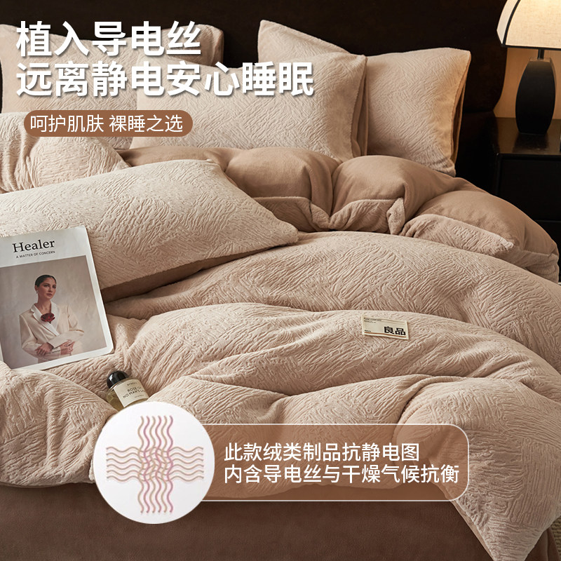 无印良品牛奶绒四件套冬季加厚珊瑚绒保暖床单被套法兰绒床上用品