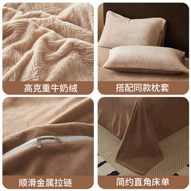 【顺丰快递】慕斯牛奶绒四件套暖绒套件床单床笠秋冬保暖牛奶绒