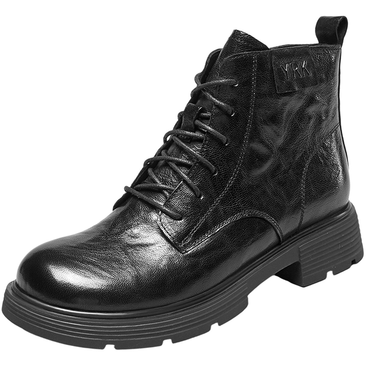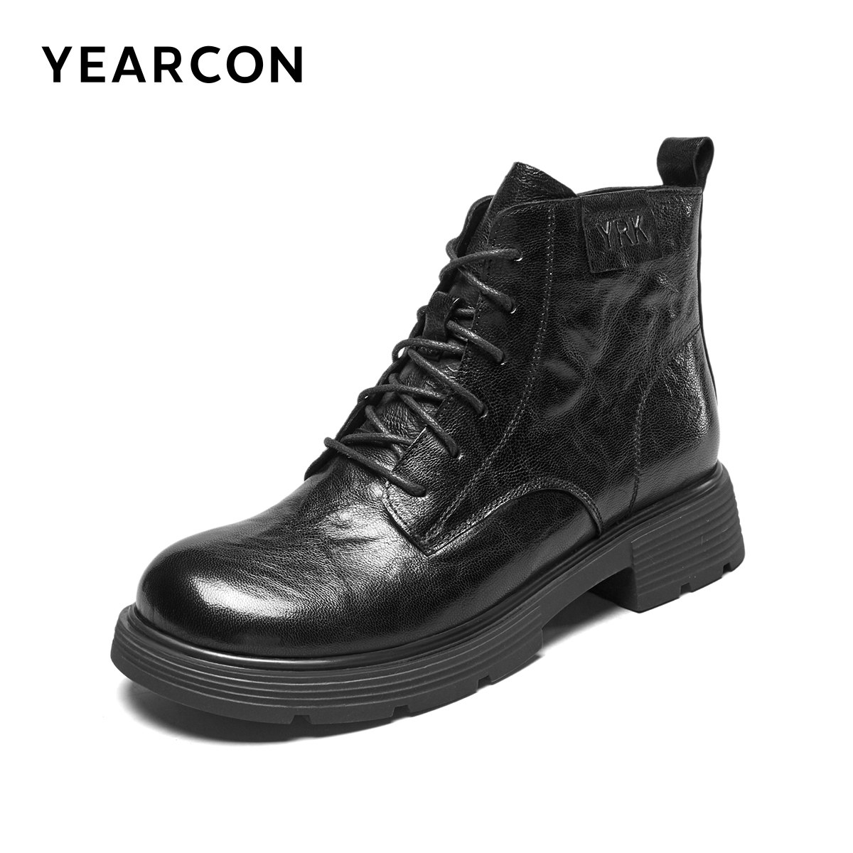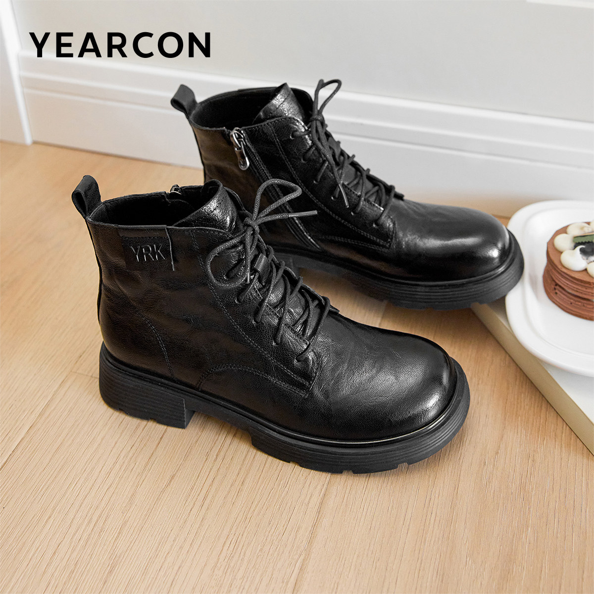 意尔康女鞋2025冬季皮鞋复古真皮休闲马丁靴粗跟英伦短靴女士单靴