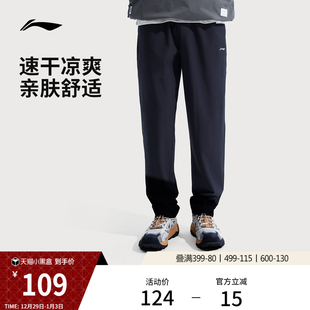 李宁速干裤男士新款健身跑步裤薄款休闲通勤裤子黑色运动长裤男款