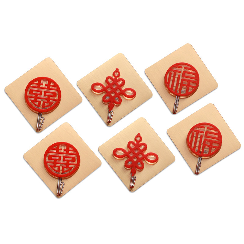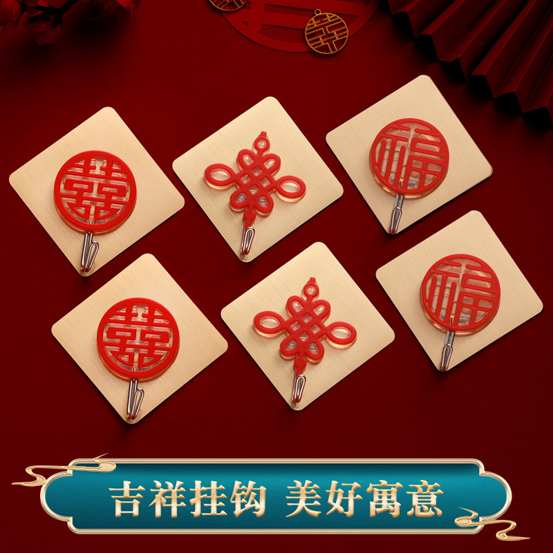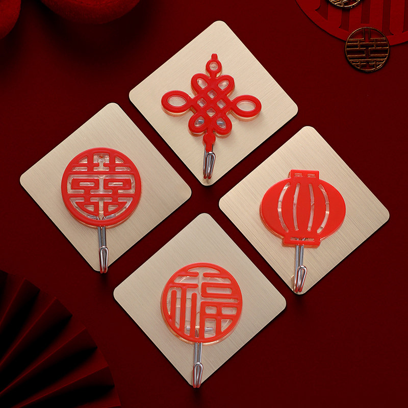 中国红色福字挂钩新年粘钩打孔无痕结婚钩子粘胶喜庆墙上宿舍强力