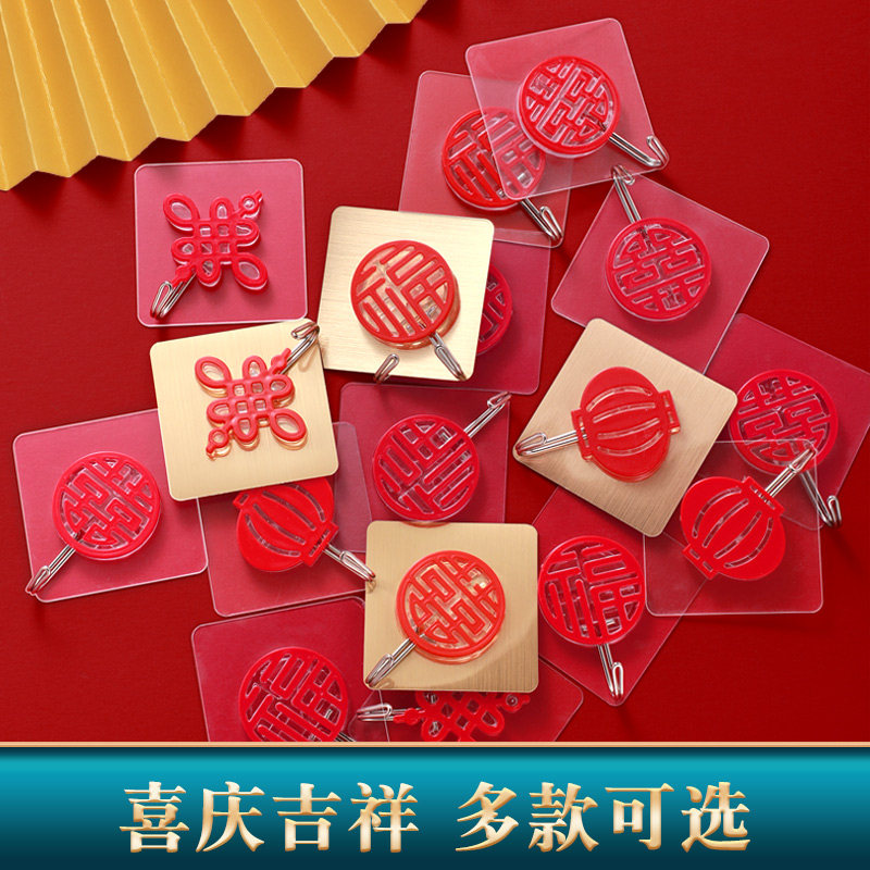 红色挂钩强力粘钩新年中国结福字喜字免打孔强力承重无痕结婚装饰