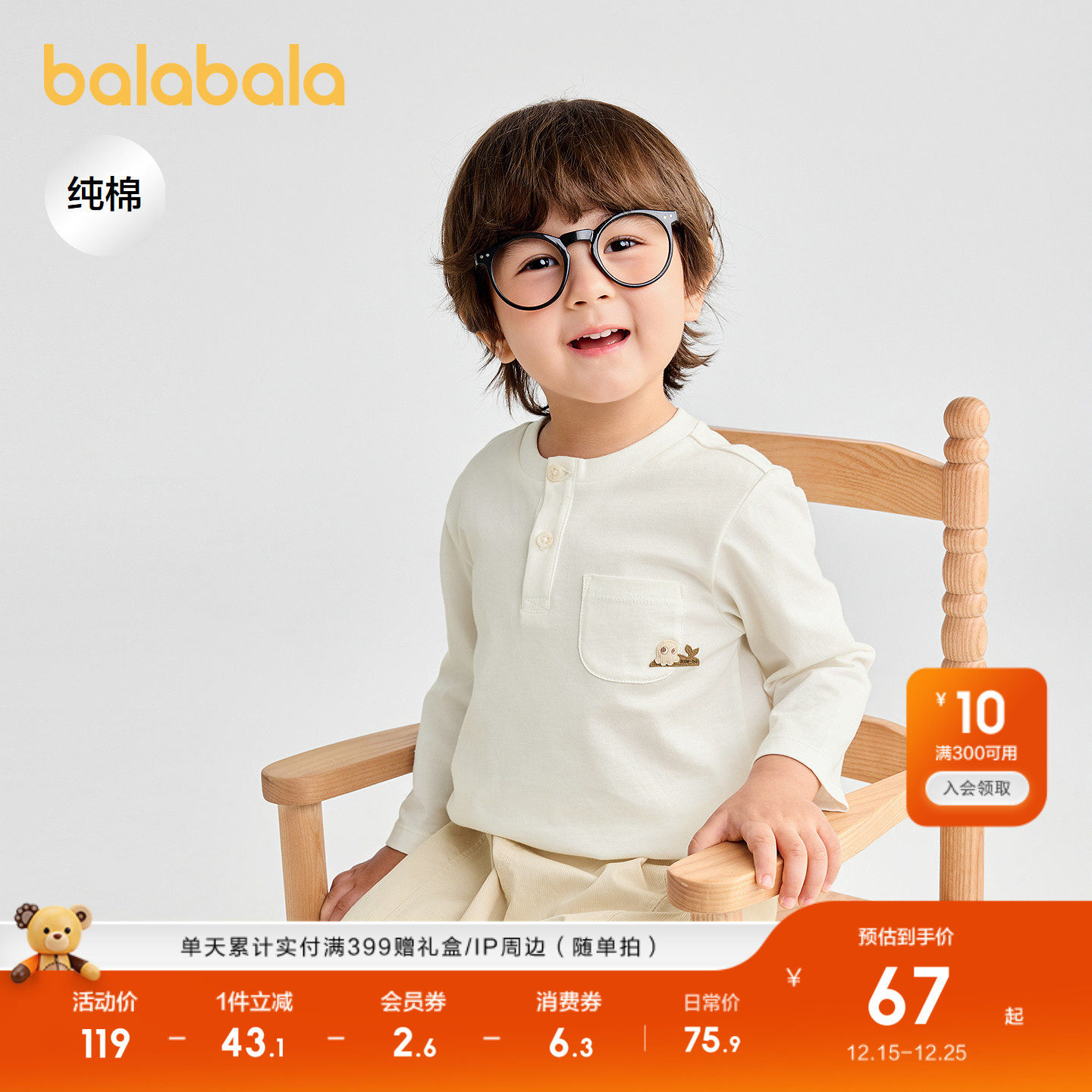 【商场同款】巴拉巴拉宝宝t恤防螨抑菌纯棉内搭男童秋装2025新款