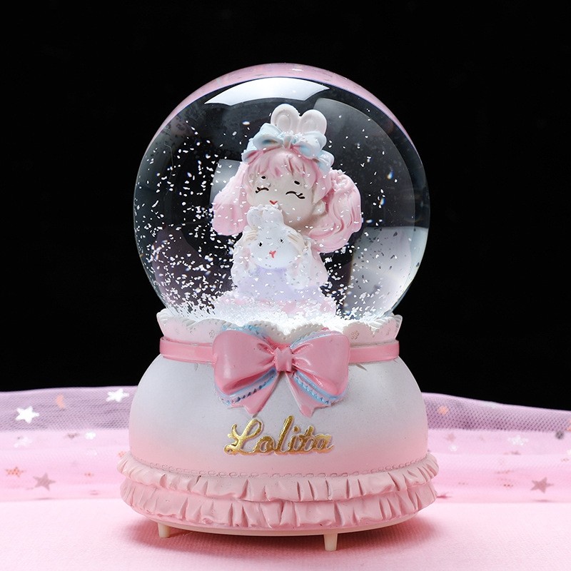 多款卡通情侣水晶球树脂摆件少女心飘雪水球八音盒儿童玩具音乐盒