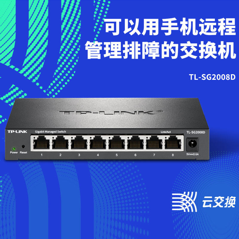 普联TP-LINK TL-SG2008D 8口千兆云管理交换机1000M网络远程控制Web管理型分线分流器VLAN划分端口汇聚集线器