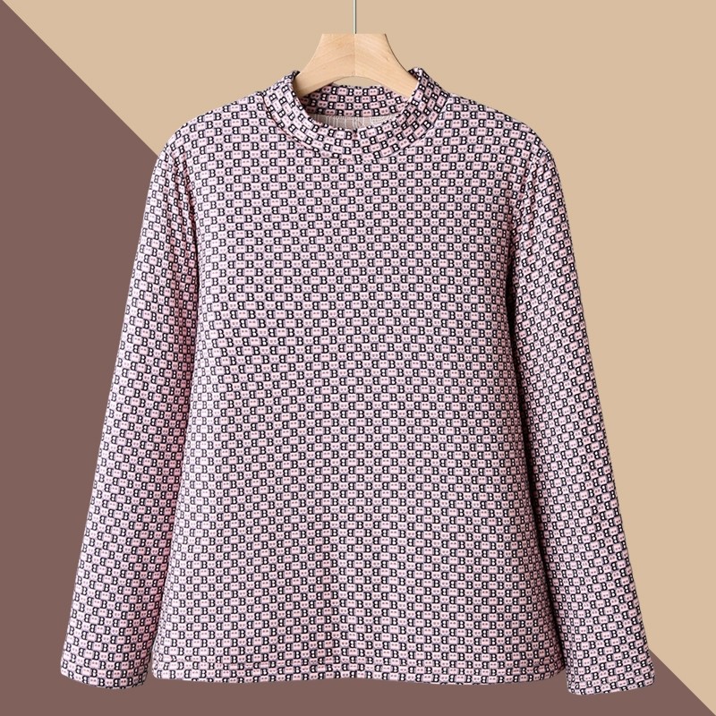 奶奶冬装中老年人女打底衫加绒保暖绒衫妈妈上衣老太太衣服半高领