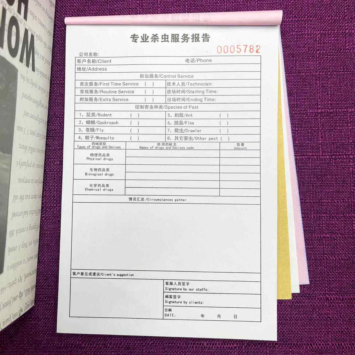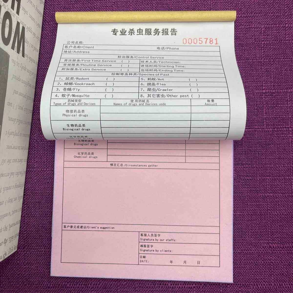 一本包邮通用蚊虫蟑鼠专业杀虫服务报告两联消杀服务合同保洁合同