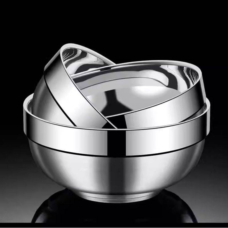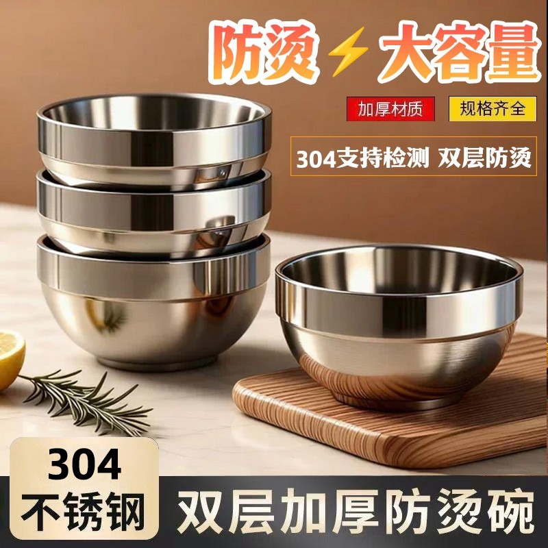 特厚304不锈钢铂金碗家用双层防烫隔热儿童学生成人米饭碗汤碗