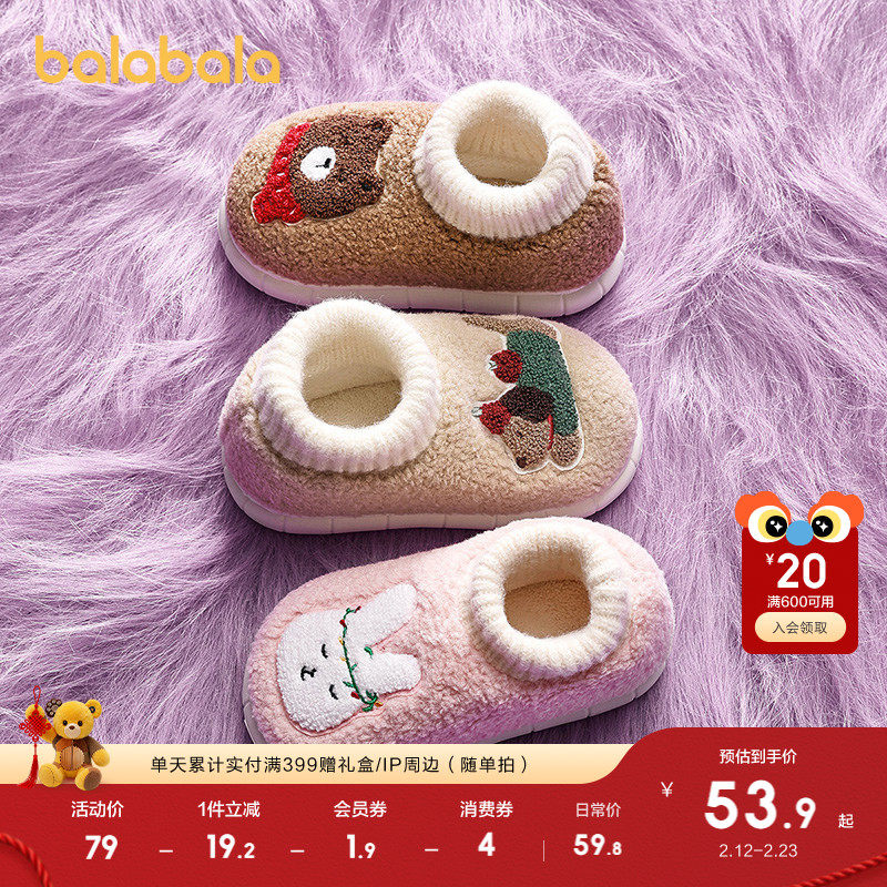 巴拉巴拉童鞋儿童拖鞋男女童2025年新款冬外穿室内加绒家居包跟鞋