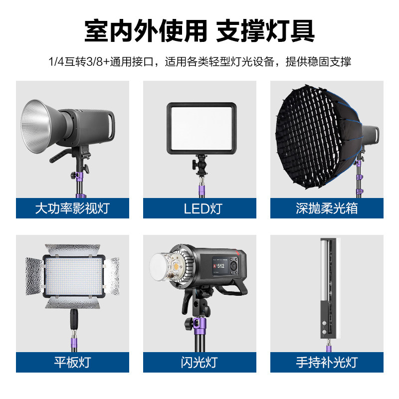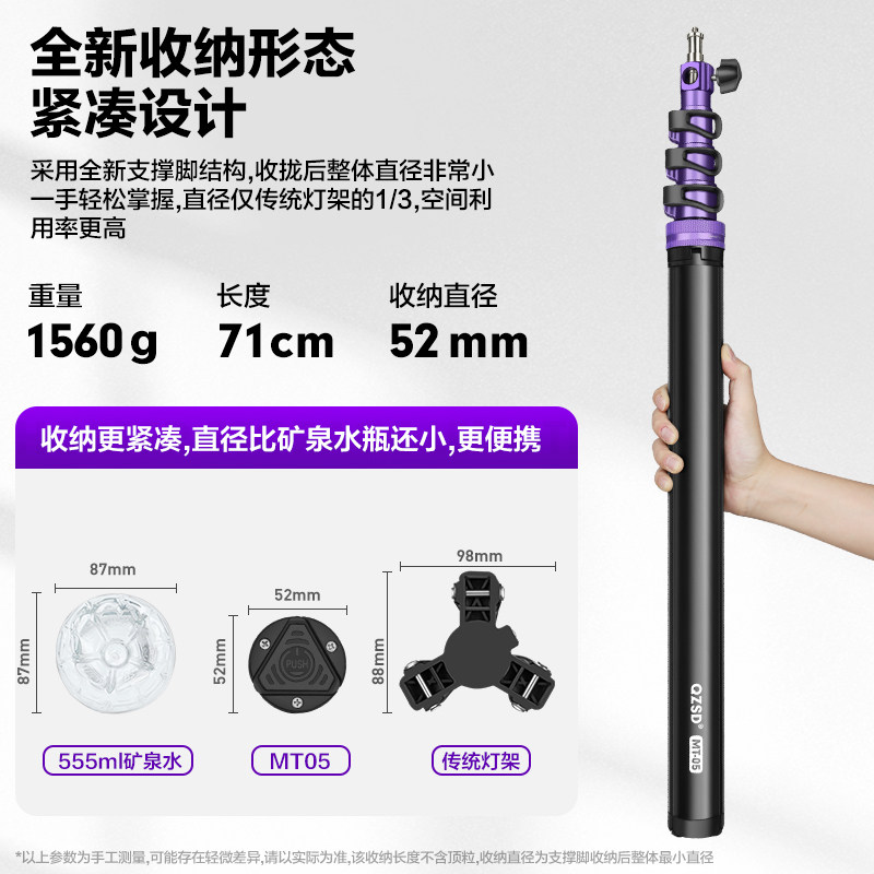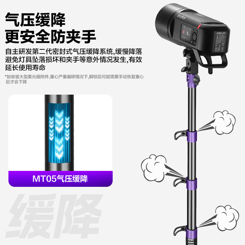 轻装时代MT05摄影灯架三脚架便携一键快开2.2米影棚视频led摄影补闪光灯支架户内室外扳扣快锁气压缓降三角架