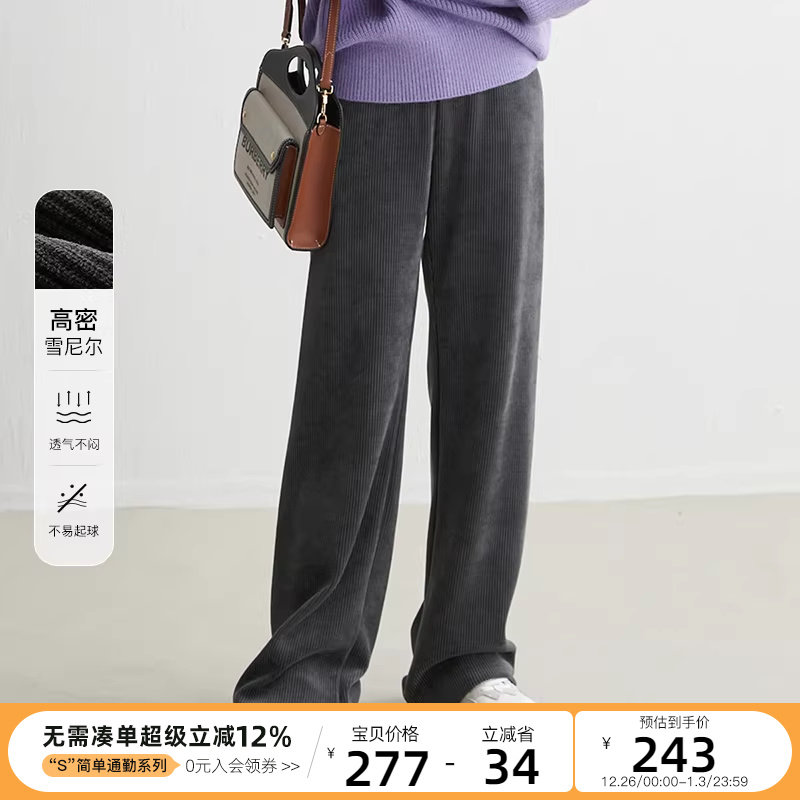CLOUDSPACE女装雪尼尔直筒裤秋冬垂顺百搭慵懒拖地休闲裤下装