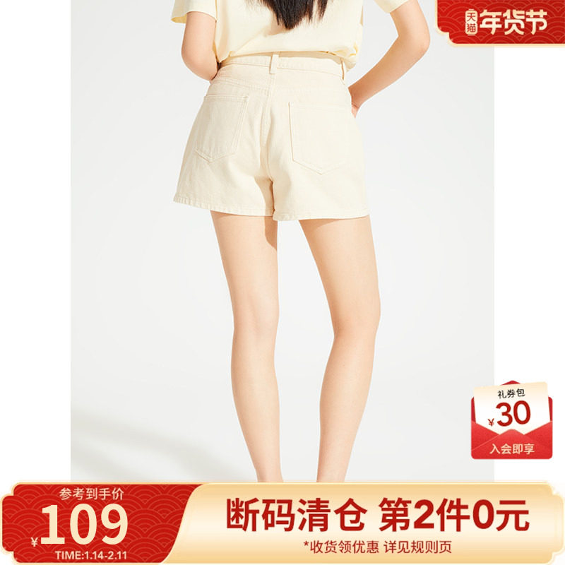 热风2024年夏季新款女士复古方形口袋牛仔短裤百搭休闲牛仔裤女裤
