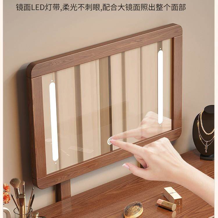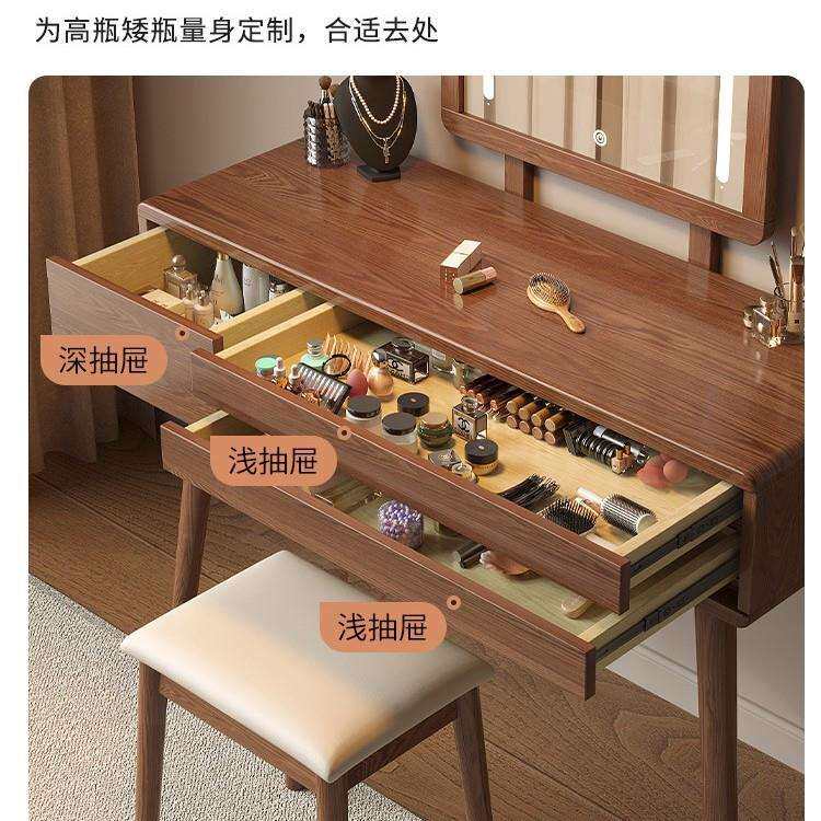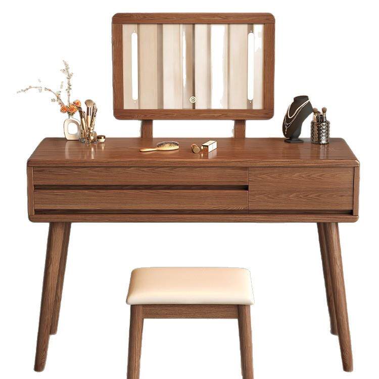 全实木梳妆台收纳柜一体卧室简约现代小户型书桌主卧带镜子化妆桌
