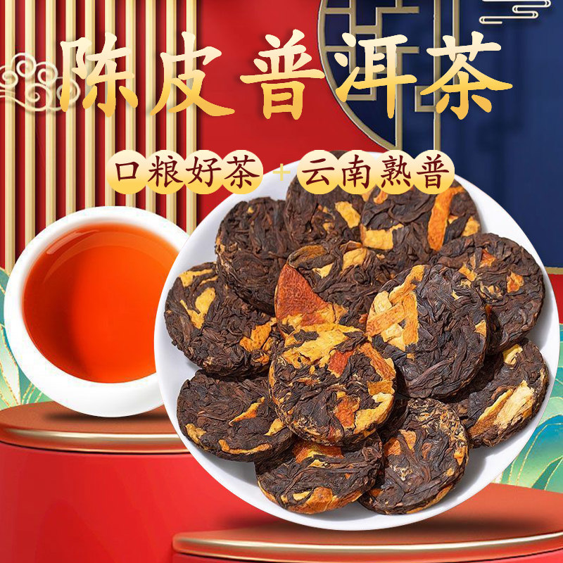 陈皮普洱茶饼茶叶柑普茶陈年熟茶新会正宗云南小饼干茶500g罐装
