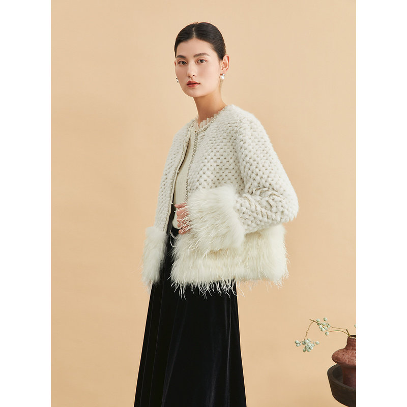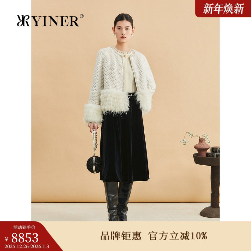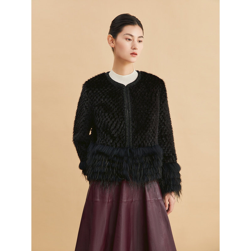 YINER音儿专选秋季剪花兔毛水貂毛皮千金风真皮皮草