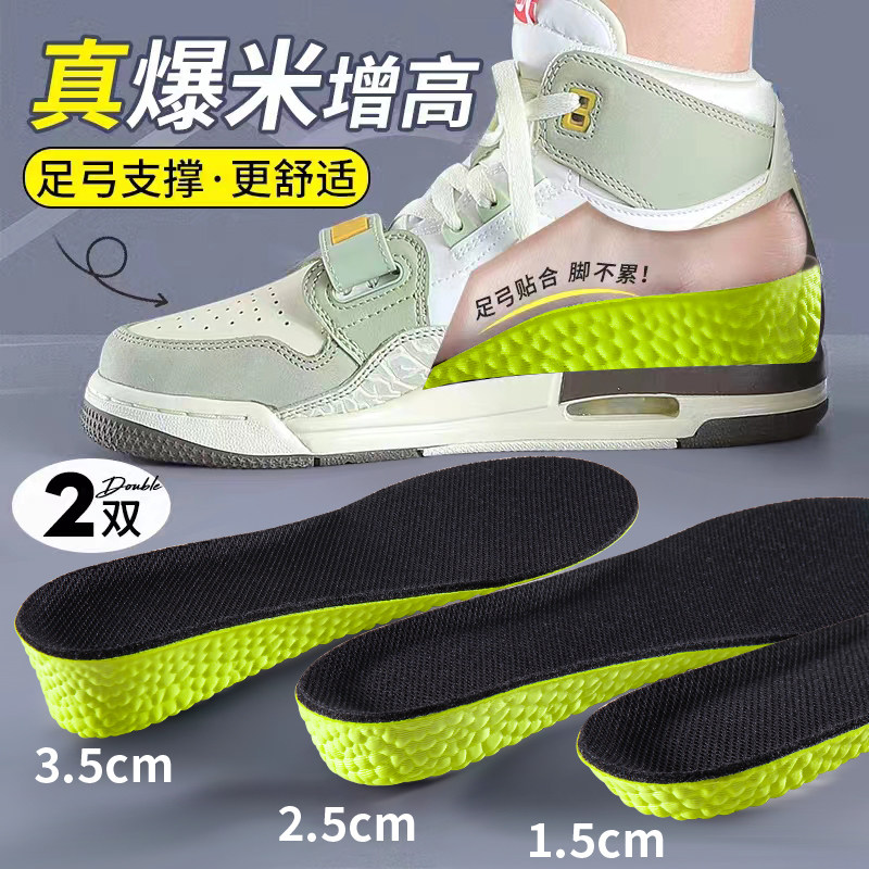 足弓内增高鞋垫男增高垫女软底不累脚正高爆米花舒适吸汗防臭减震