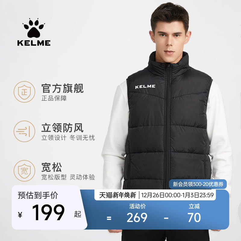 KELME卡尔美运动马甲棉服男足球训练跑步背心加厚马夹外套冬坎肩