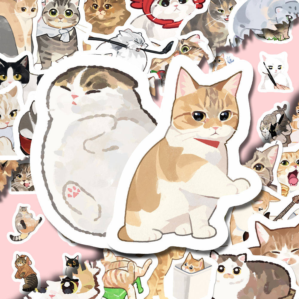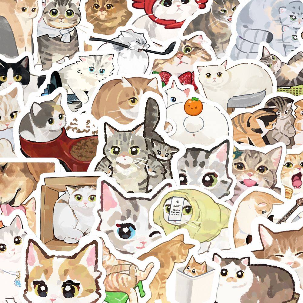 164张猫猫治愈世界小清新插画猫咪可爱简笔画贴纸diy手账热门贴画