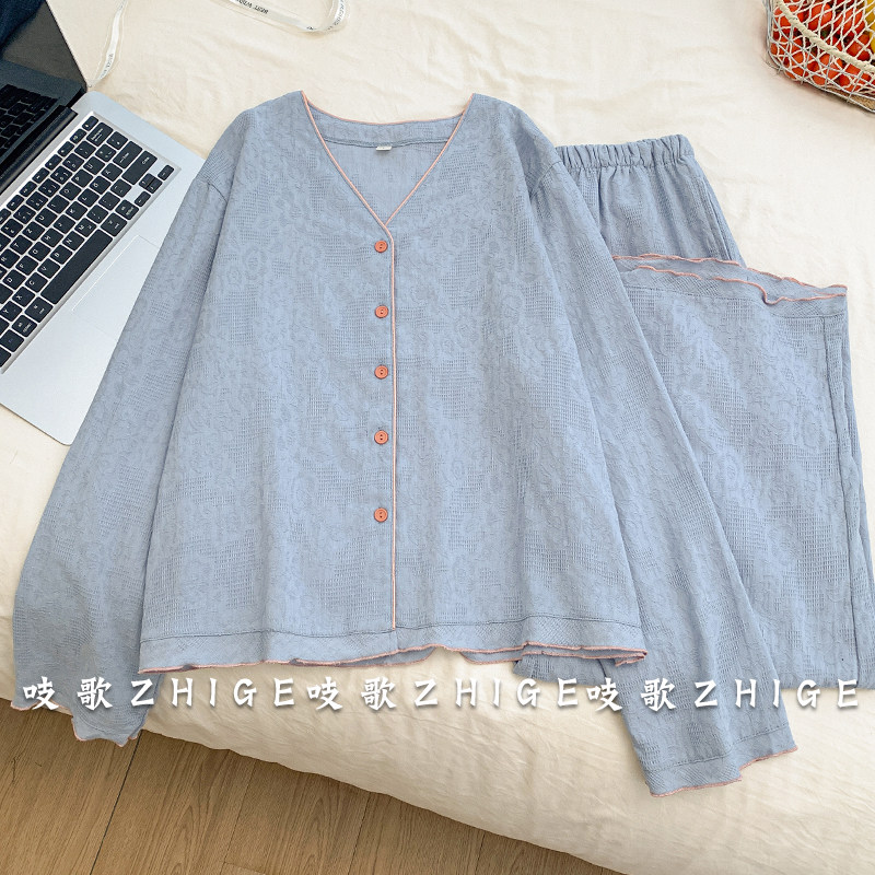浪莎睡衣女春秋款纯棉长袖2025年新款秋冬大码薄款宽松开衫家居服